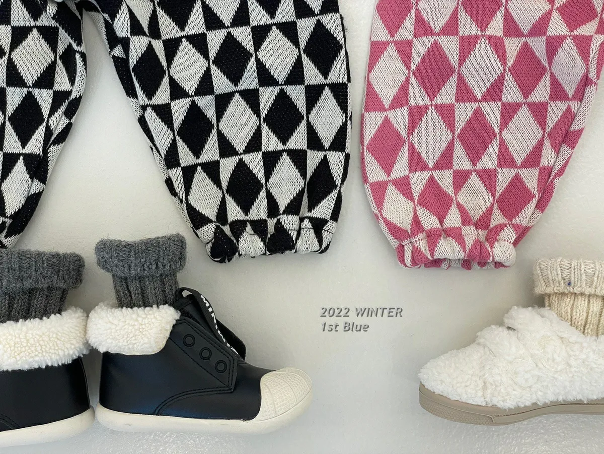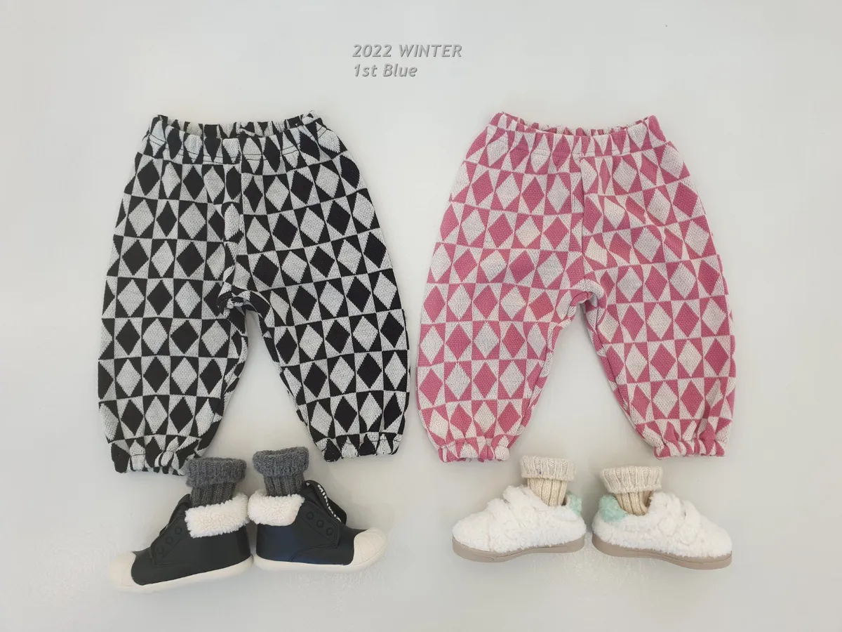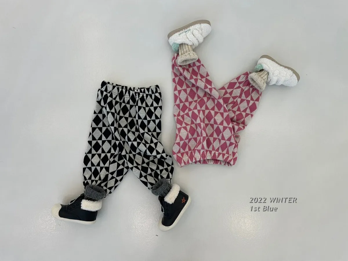 正韓菱形格紋縮口棉褲(80-140cm現貨)