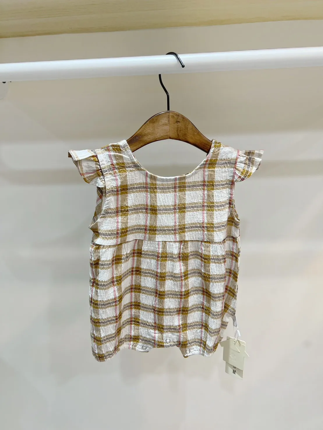 baby棉麻格子包屁衣(66-100cm 現貨)