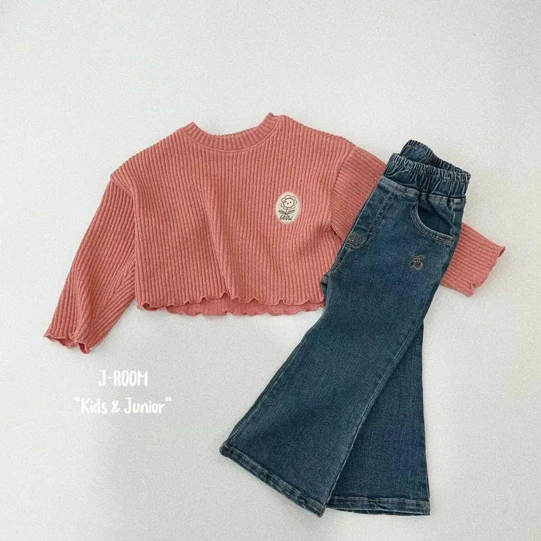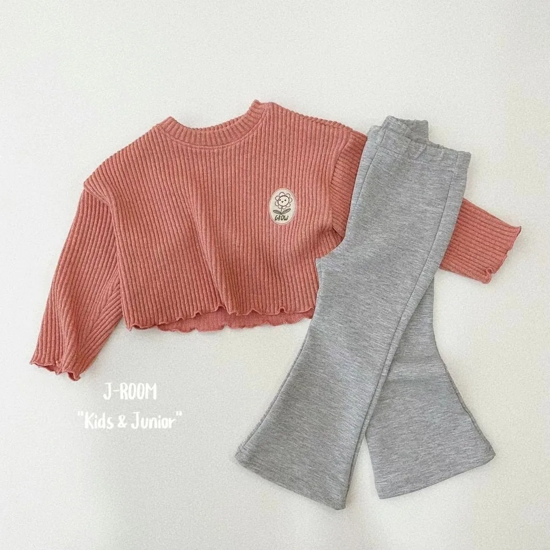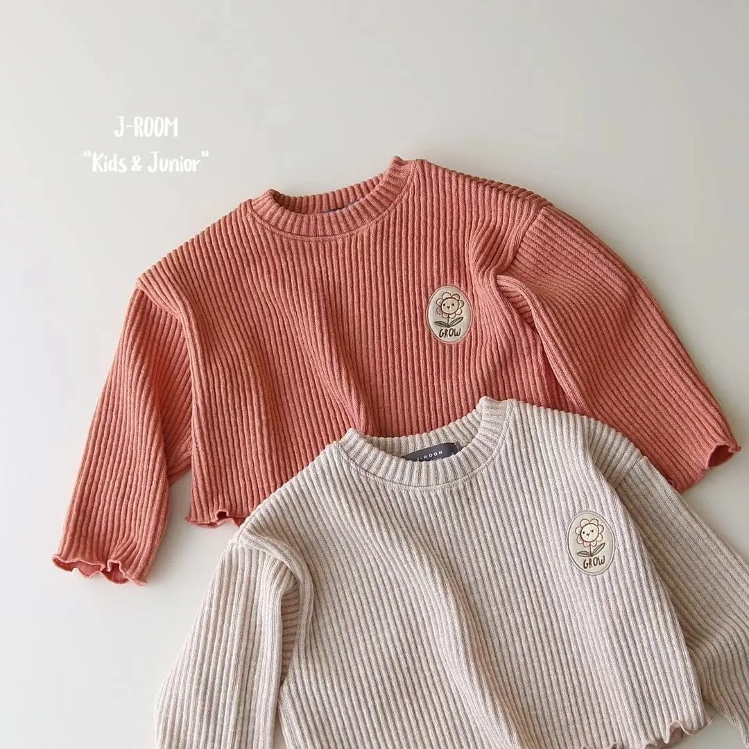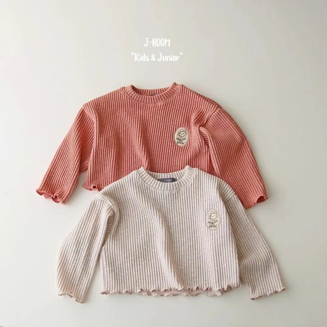 正韓坑條小花木耳邊上衣(90-150cm現貨)