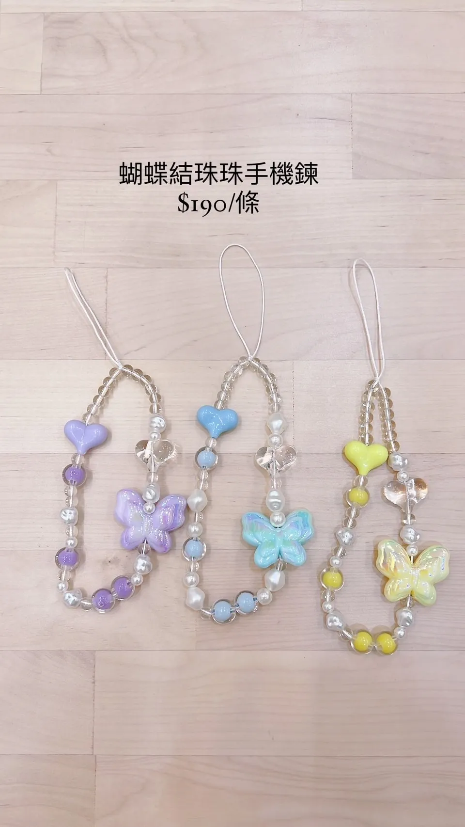 蝴蝶結珠珠手機鍊