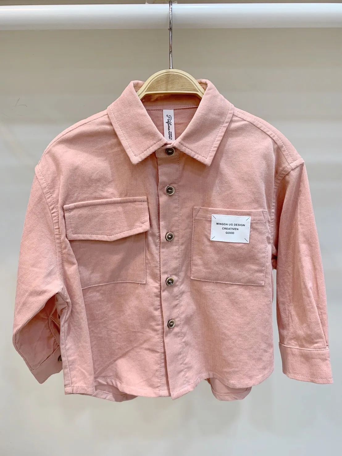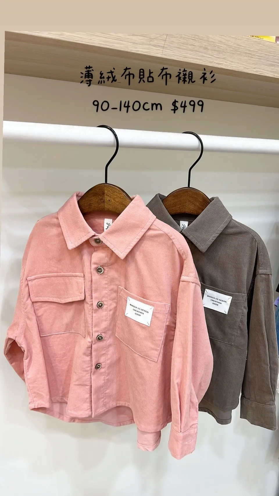 香水娜娜~貼袋⾞章襯衣(90-140cm現貨)