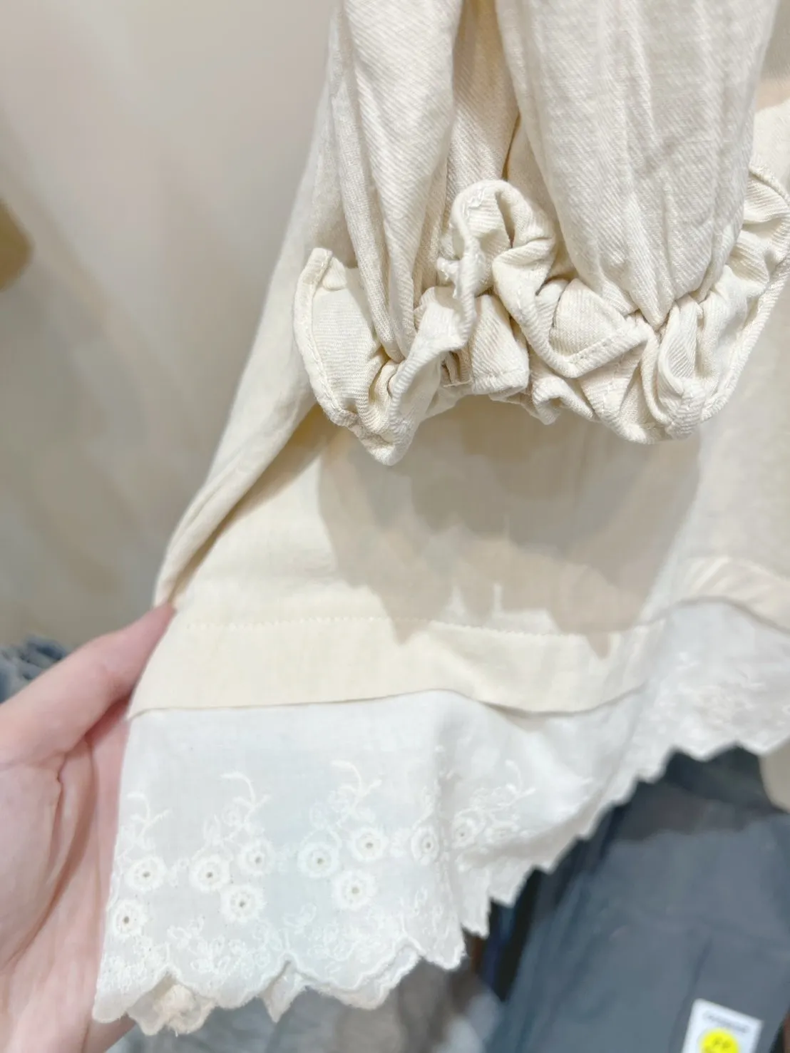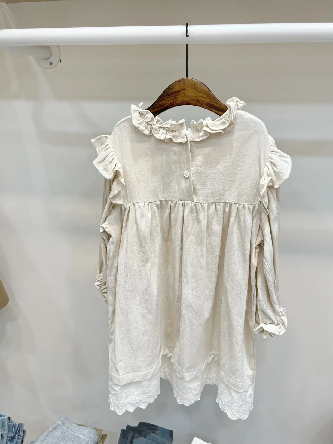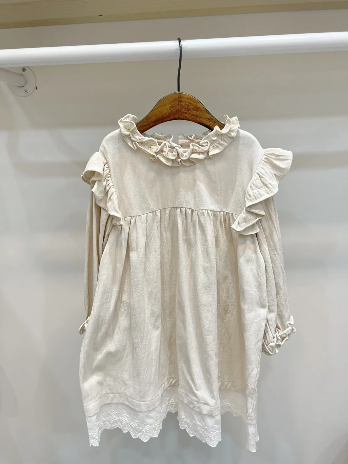 女大童拼接下擺蕾絲浪漫棉麻洋裝(110-150cm現貨)