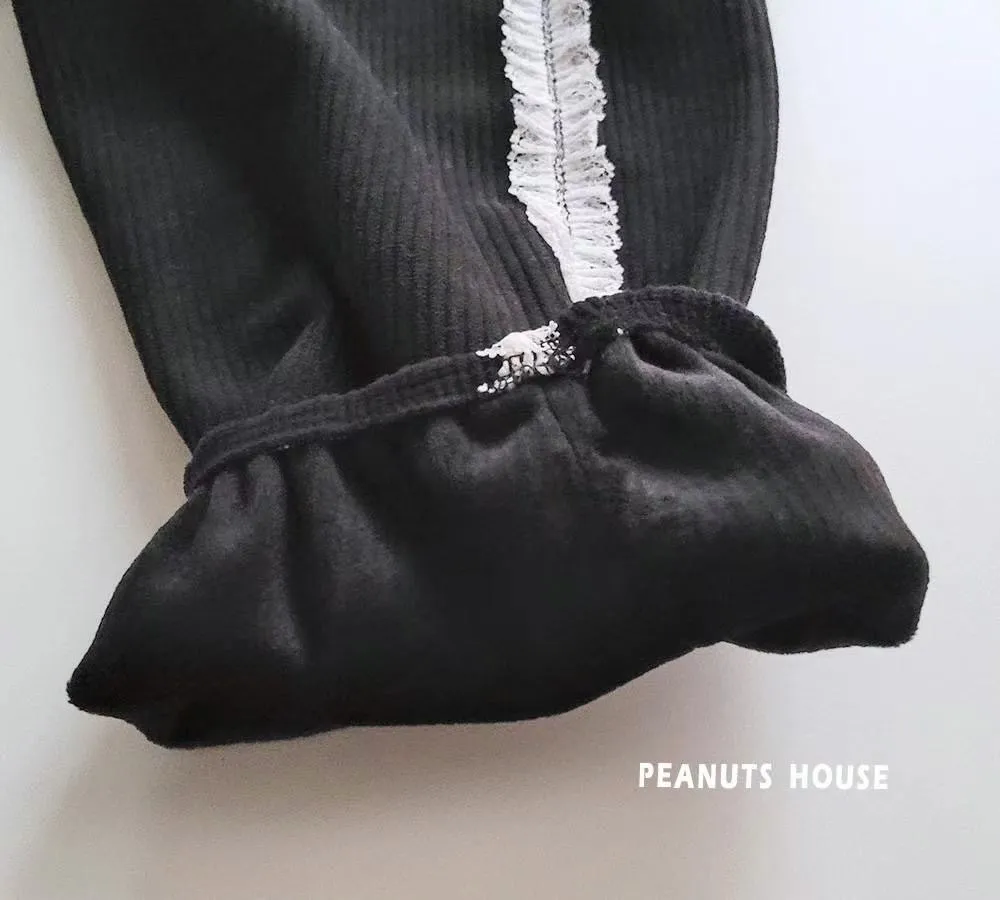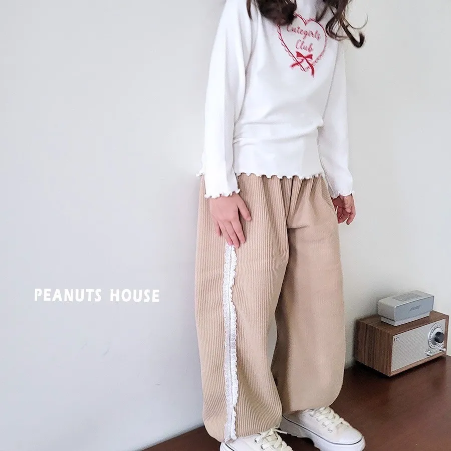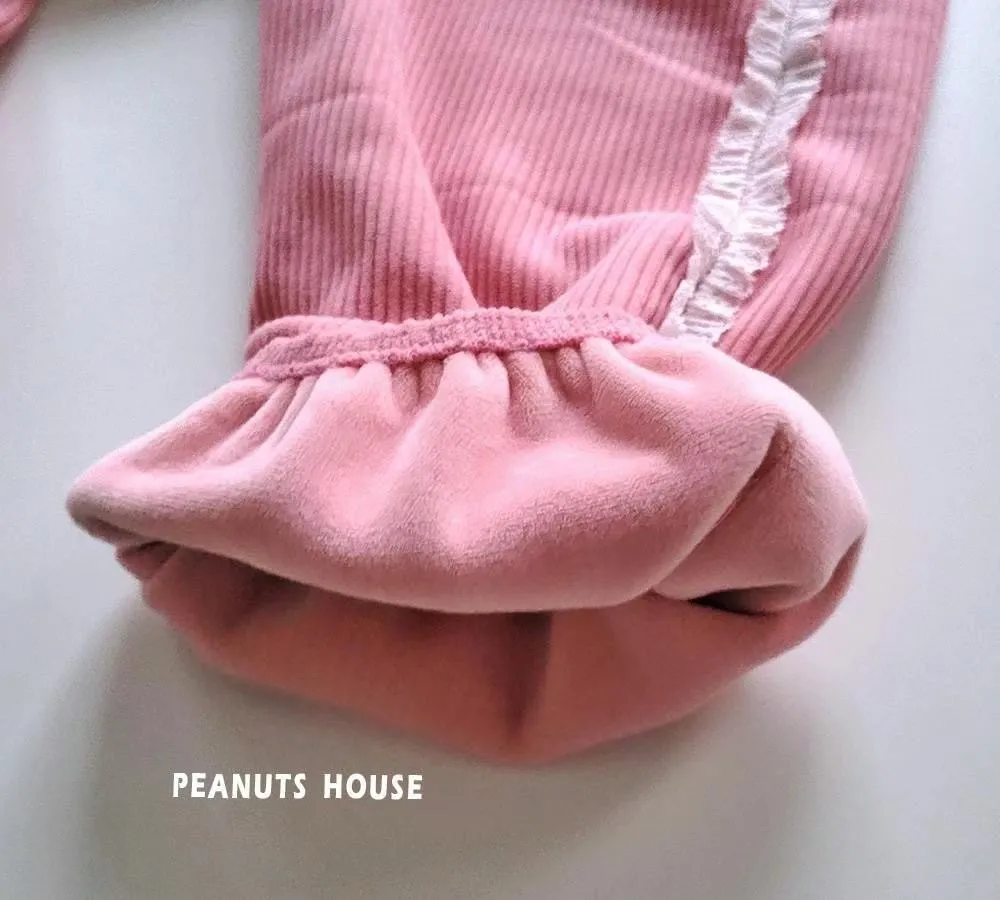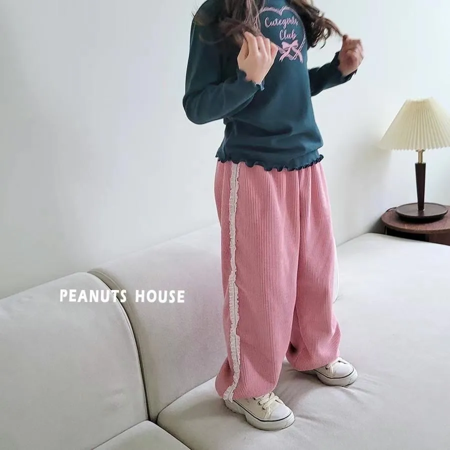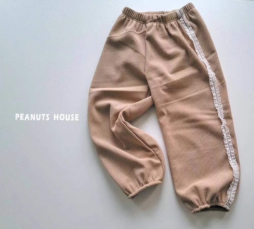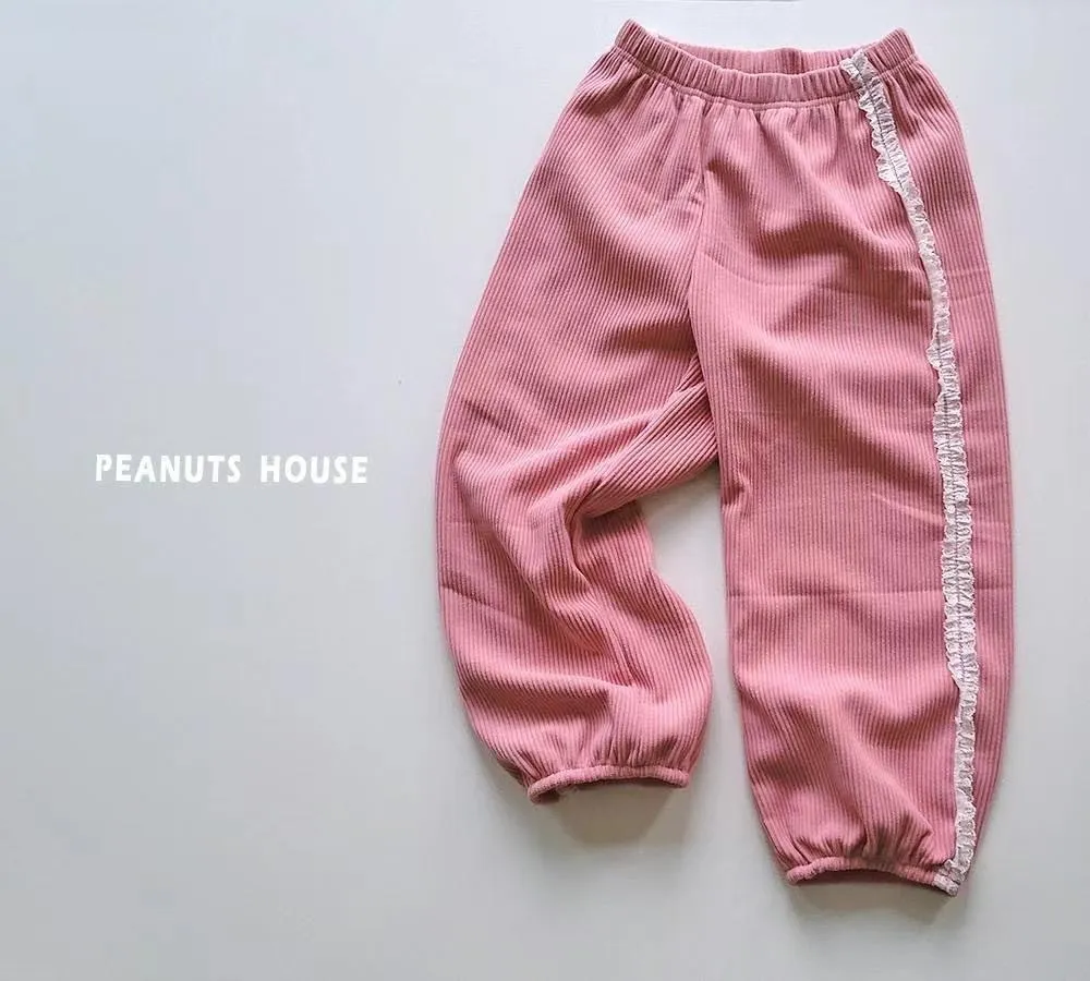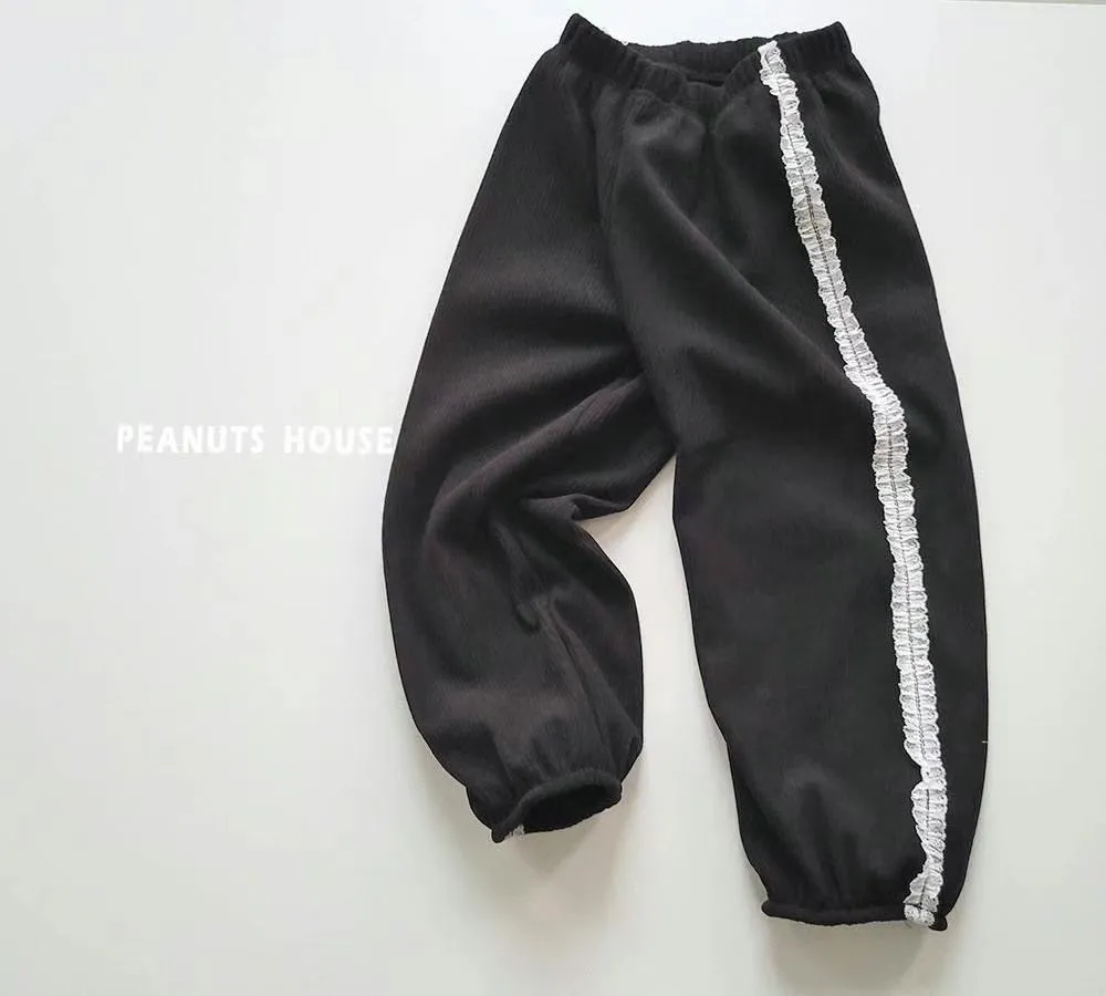 正韓蕾絲邊絨布縮口褲(90-140cm現貨)