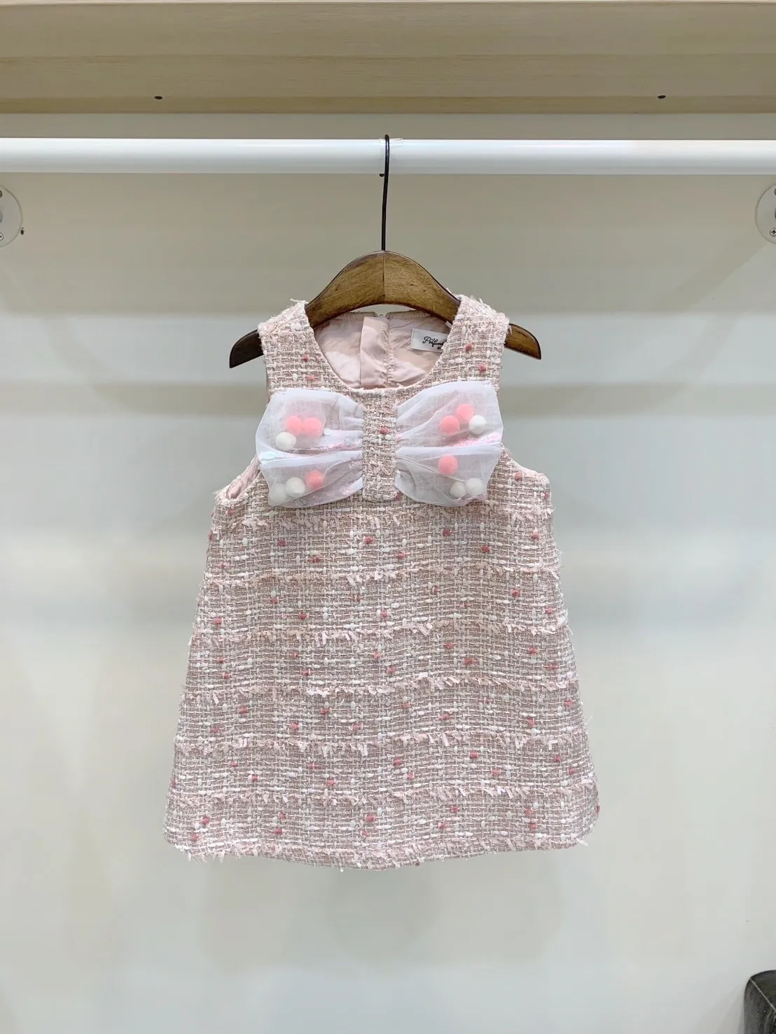 香水娜娜~珠片蝴蝶結背⼼洋裝(90-140cm現貨)