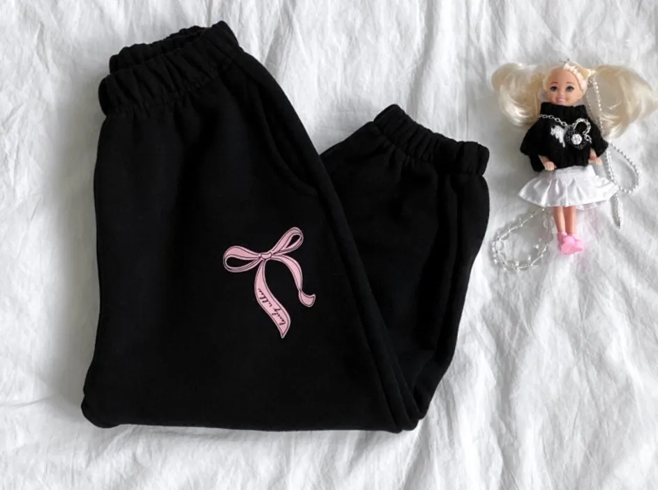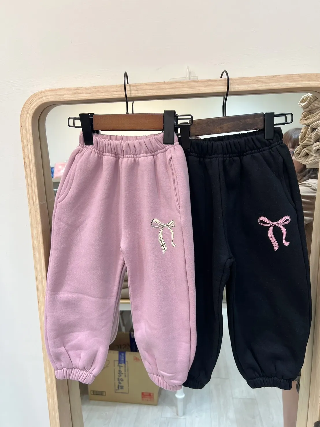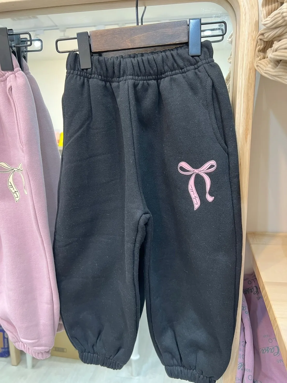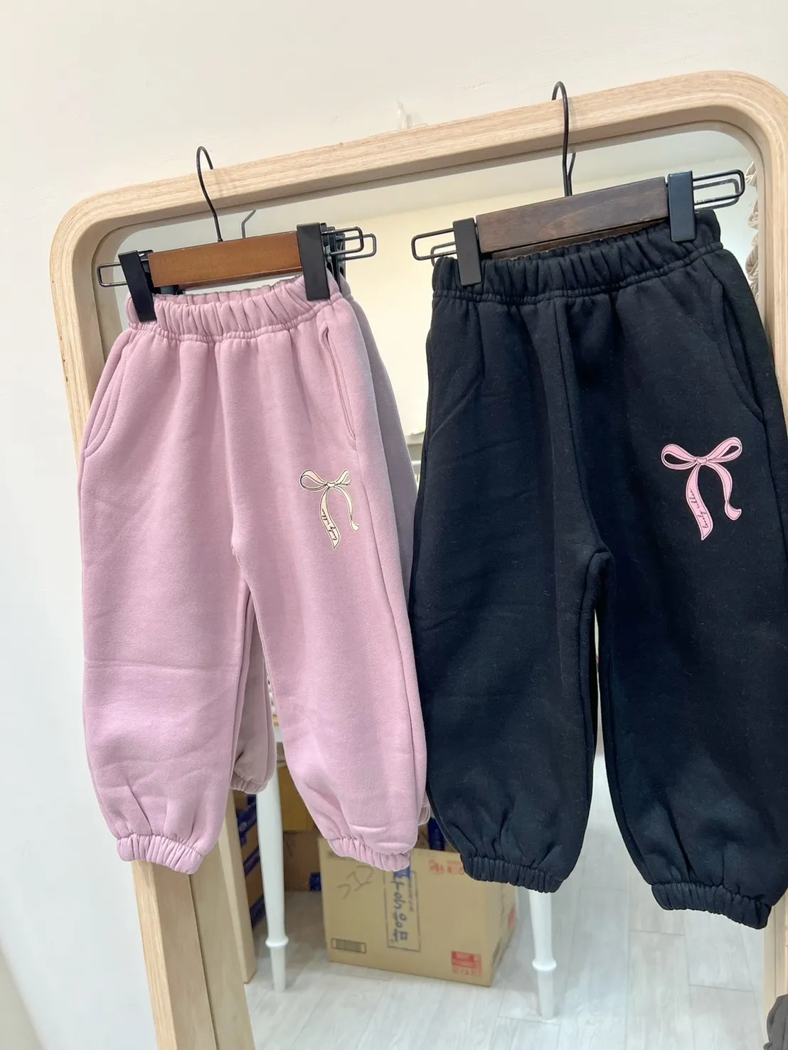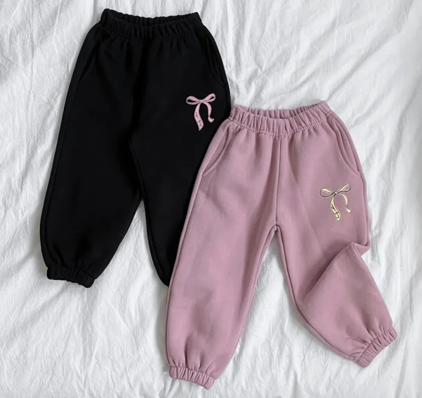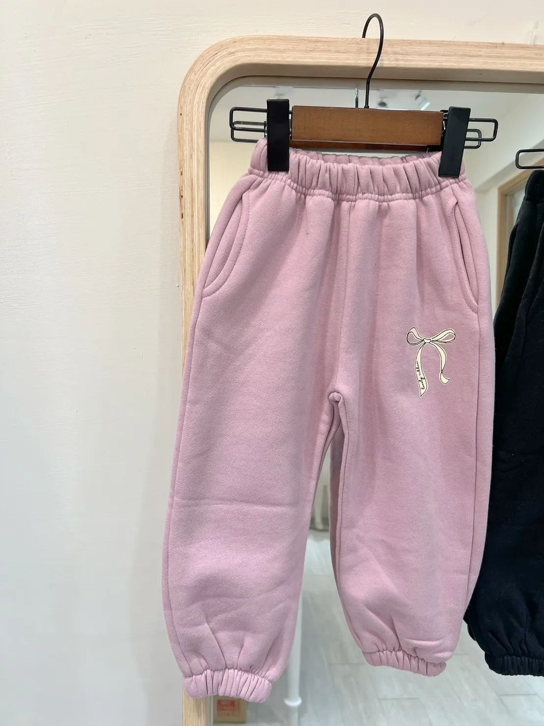 正韓蝴蝶結刷毛縮口棉褲(100-150cm 現貨)