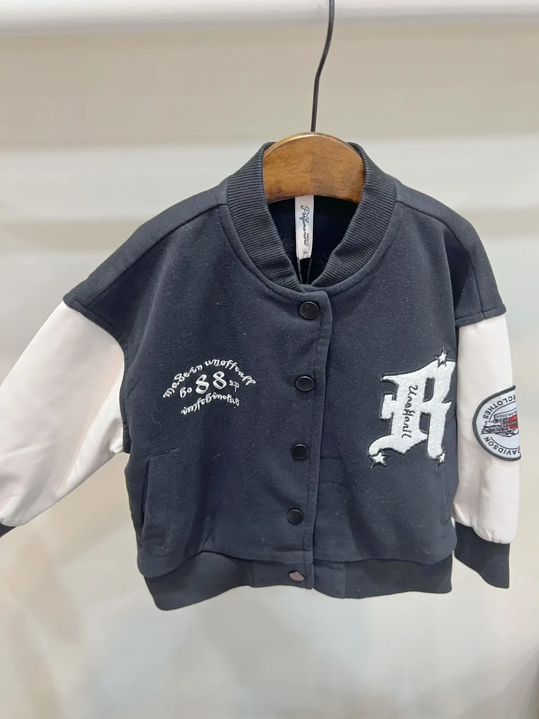 香水娜娜~毛巾鏽棒球外套(90-140cm現貨)