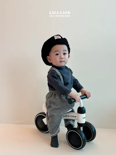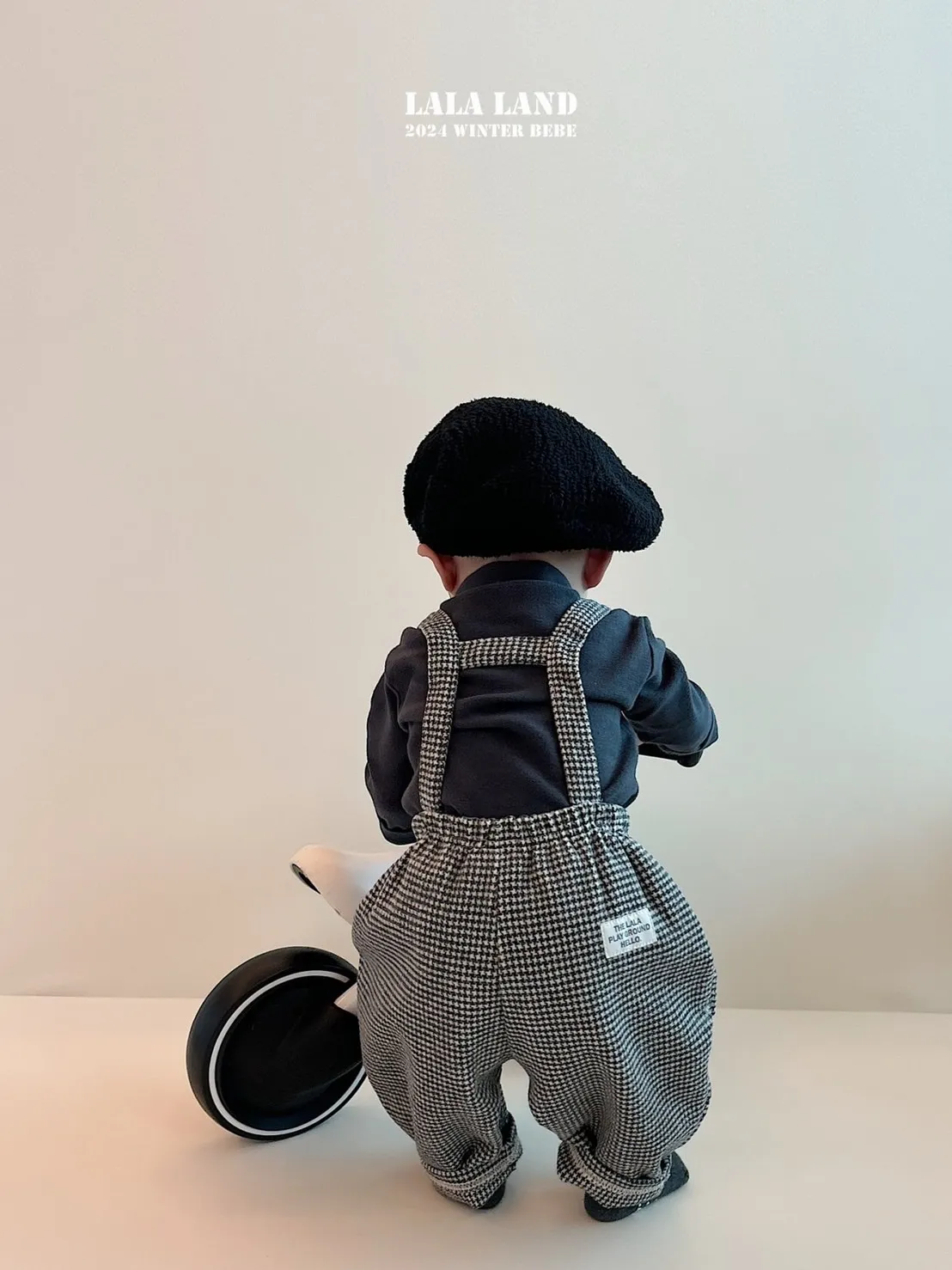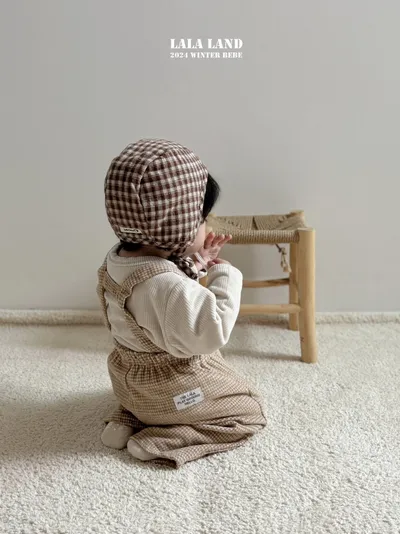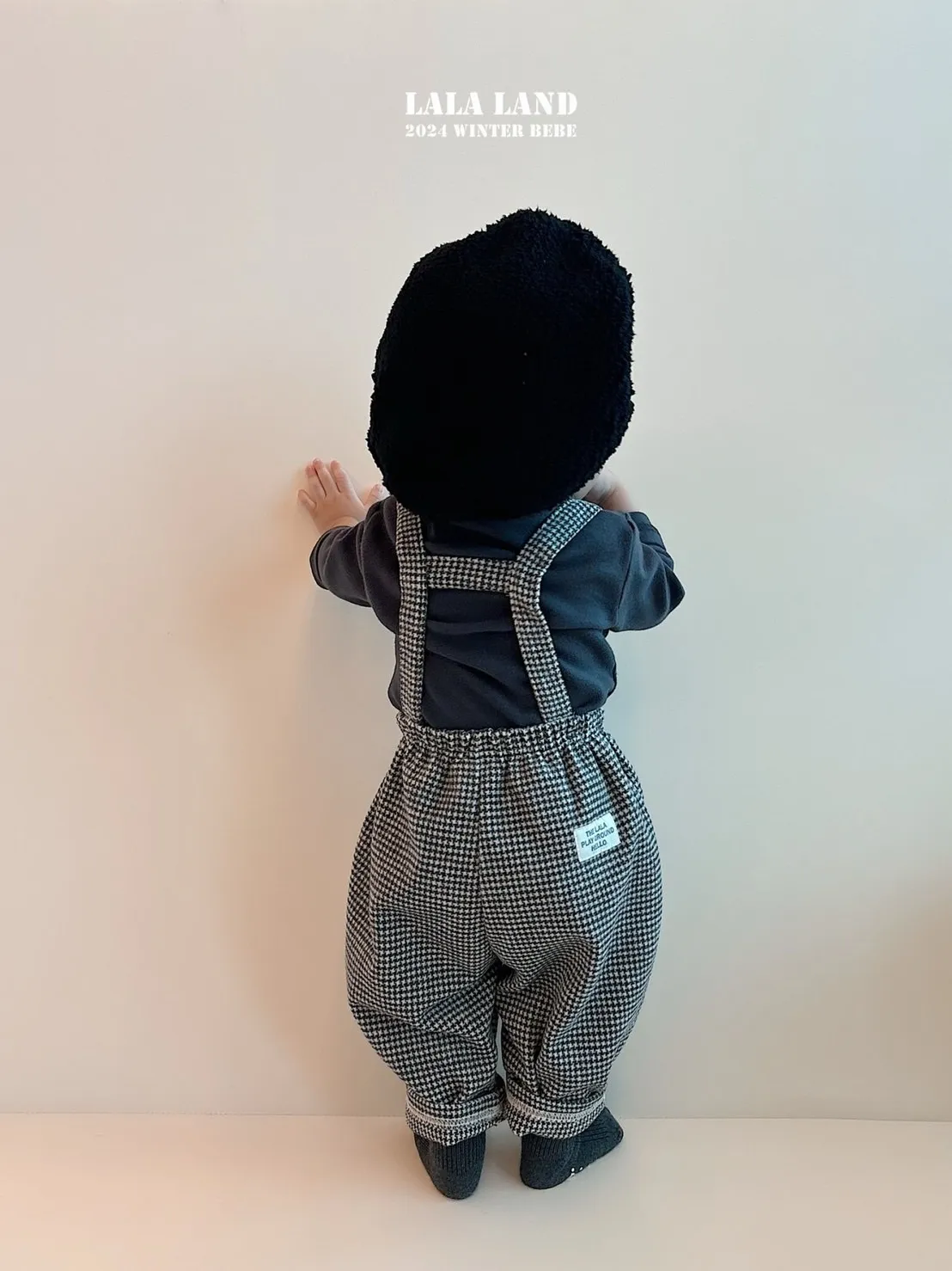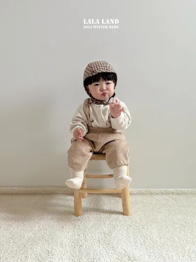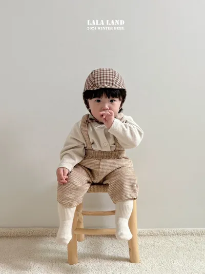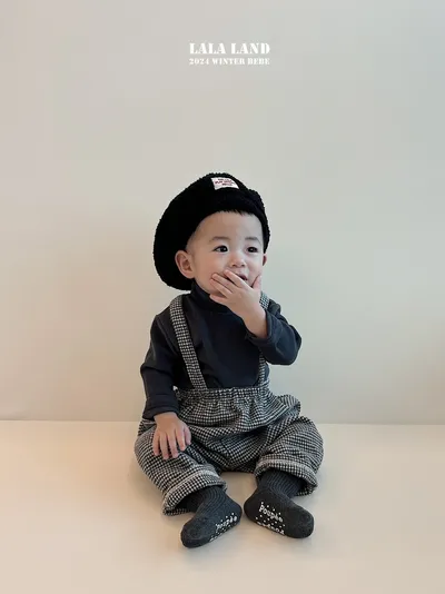 正韓寶寶格紋刷毛吊帶褲(60-80cm預購)