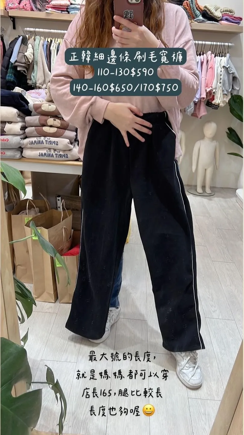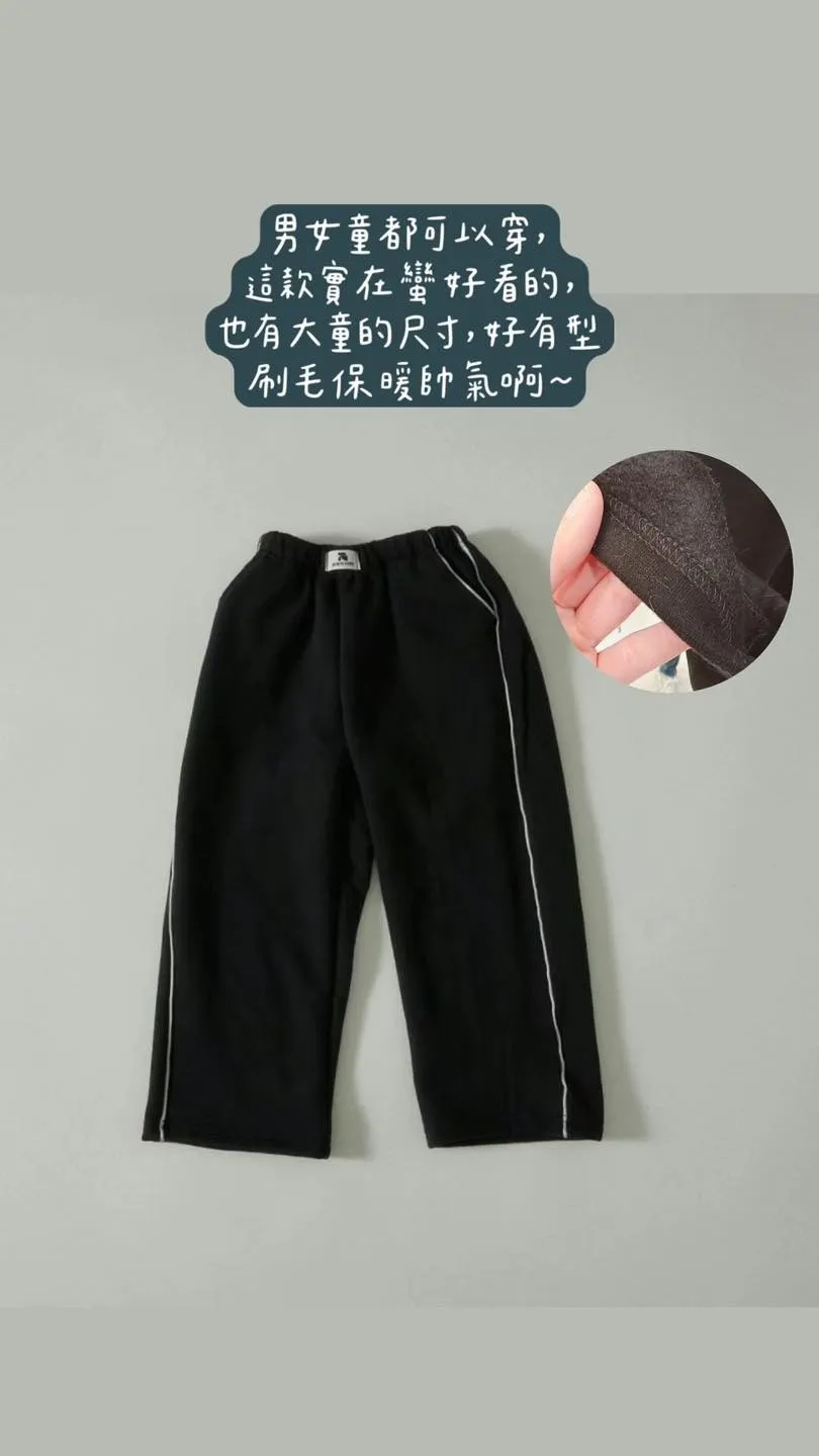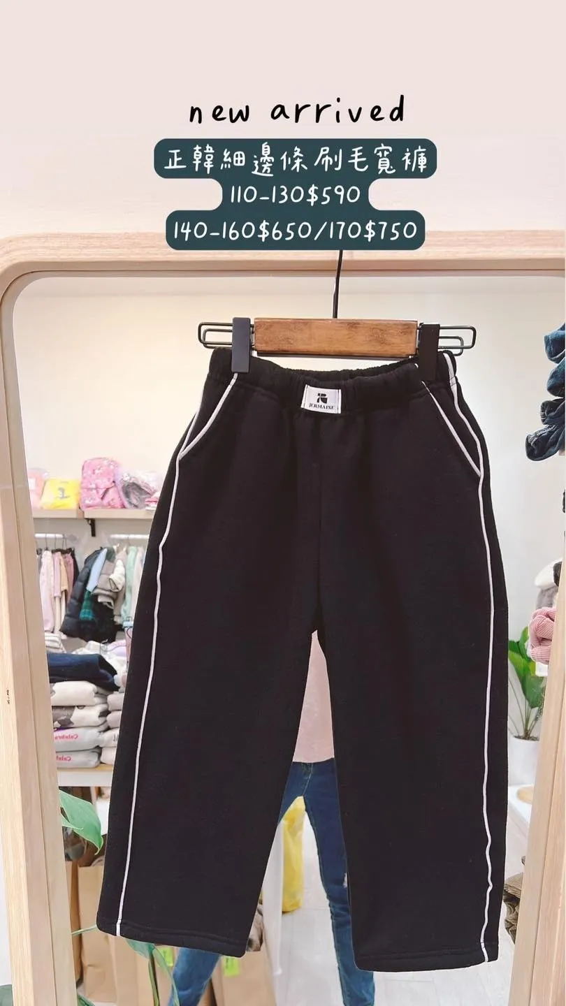 正韓細邊條刷毛寬褲(110-170cm現貨)
