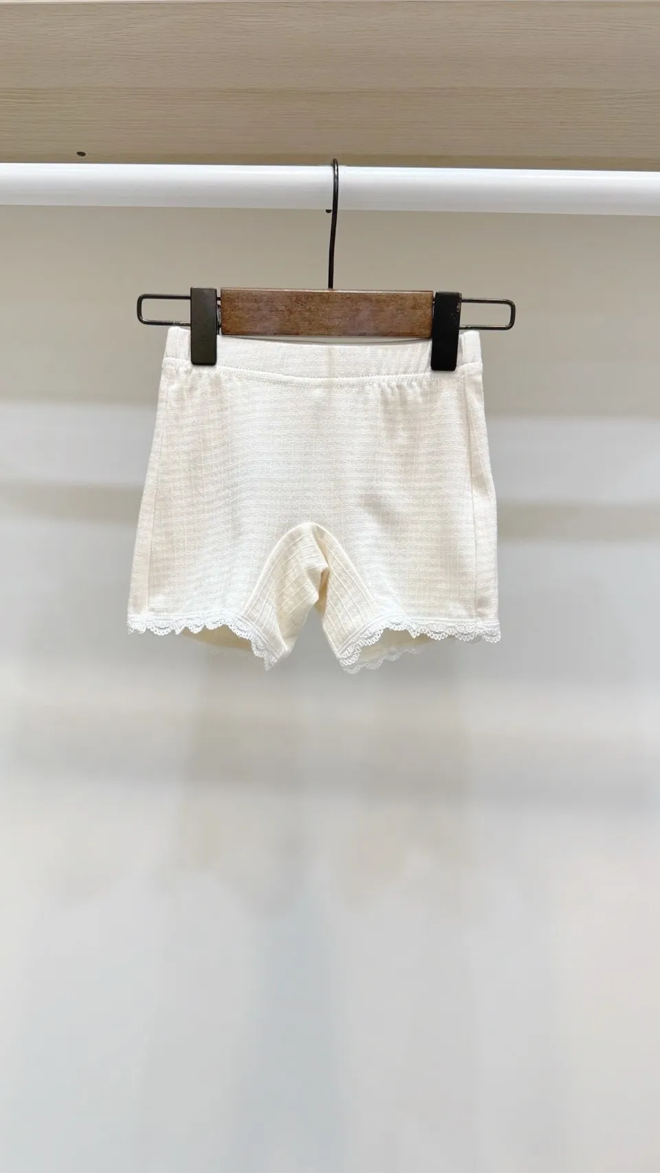香水娜娜~坑條⾞花邊安全褲(90-140cm現貨)
