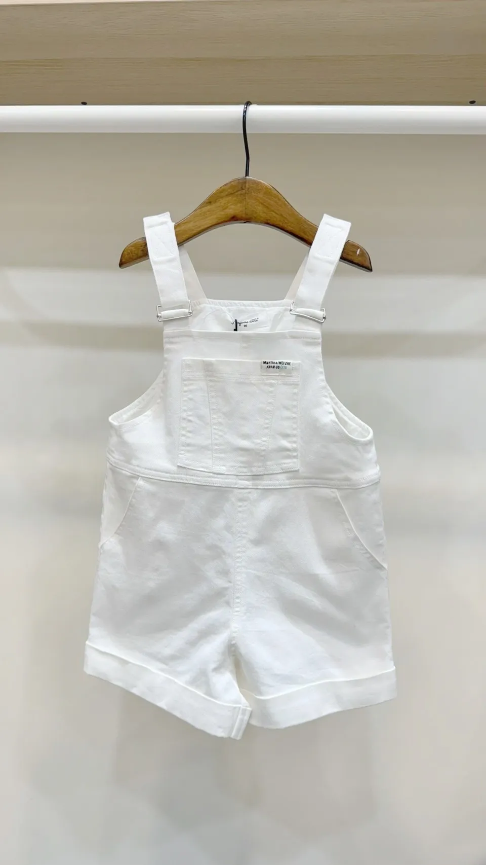 香水娜娜~貼袋返折腳⼝背帶褲(90-140cm現貨)