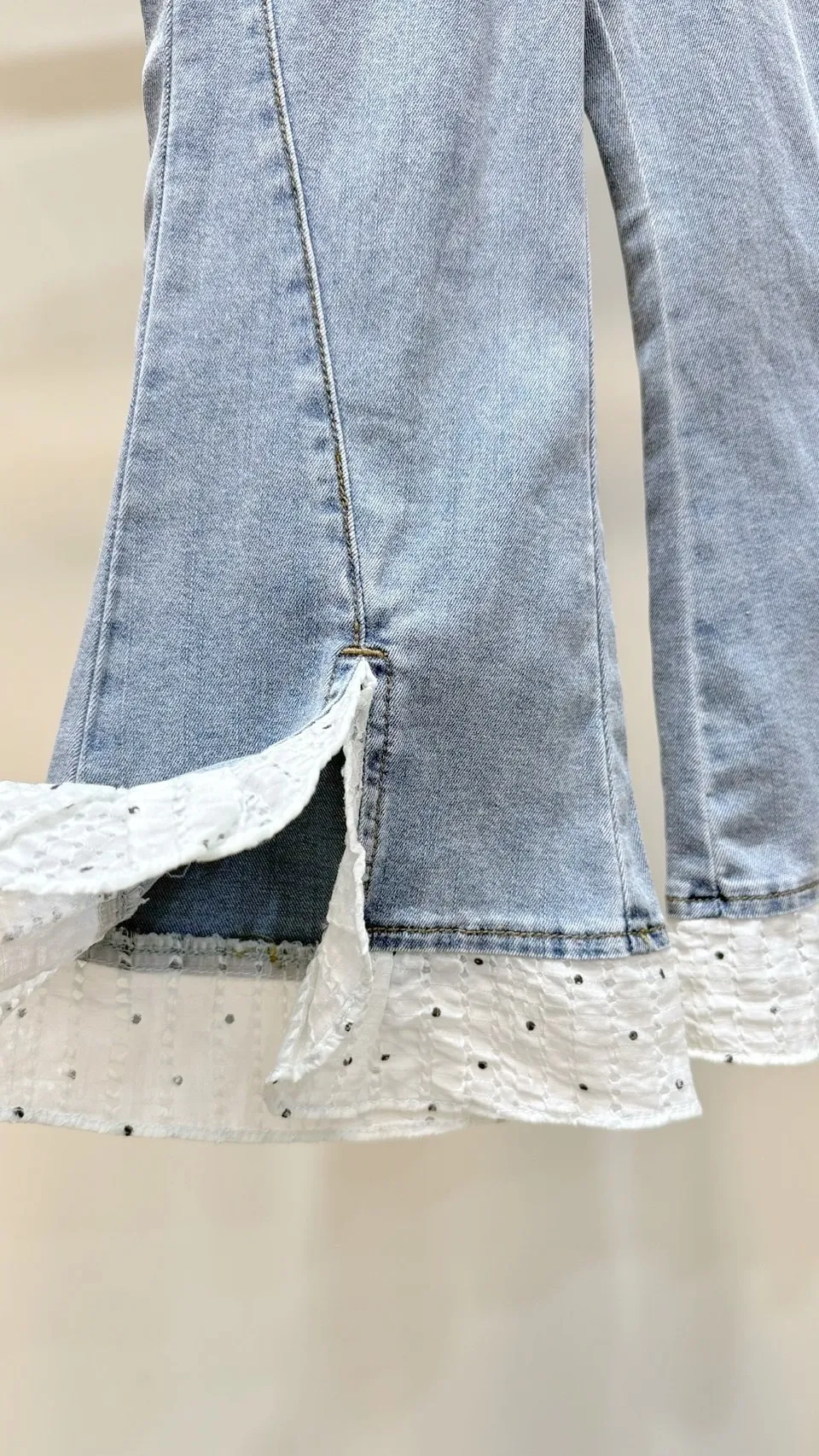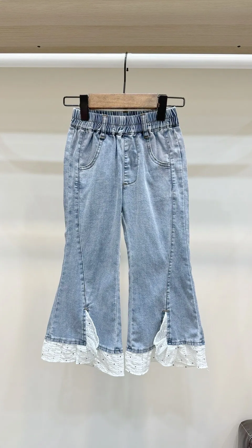 香水娜娜~波點⽊耳邊天絲⽜仔褲(90-140cm現貨)