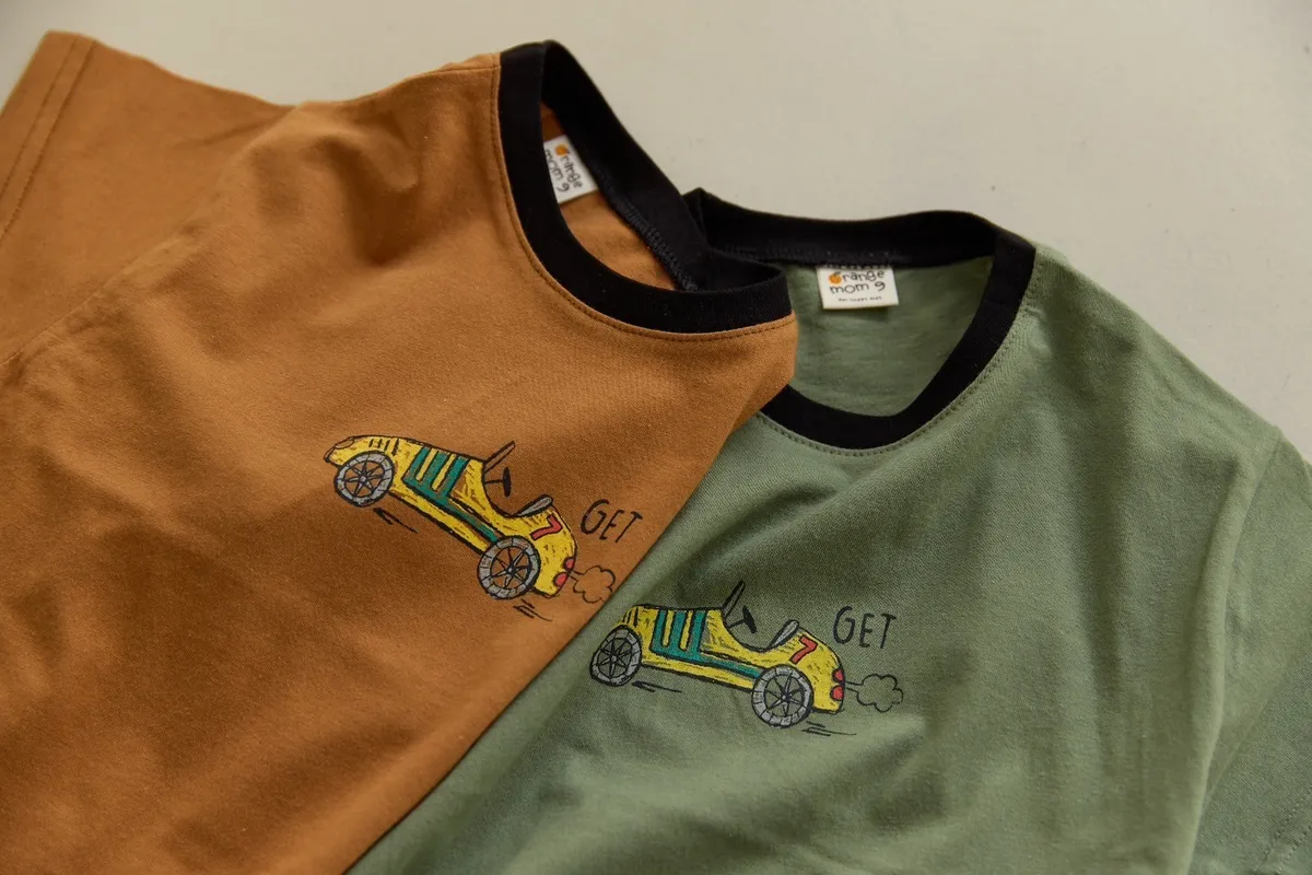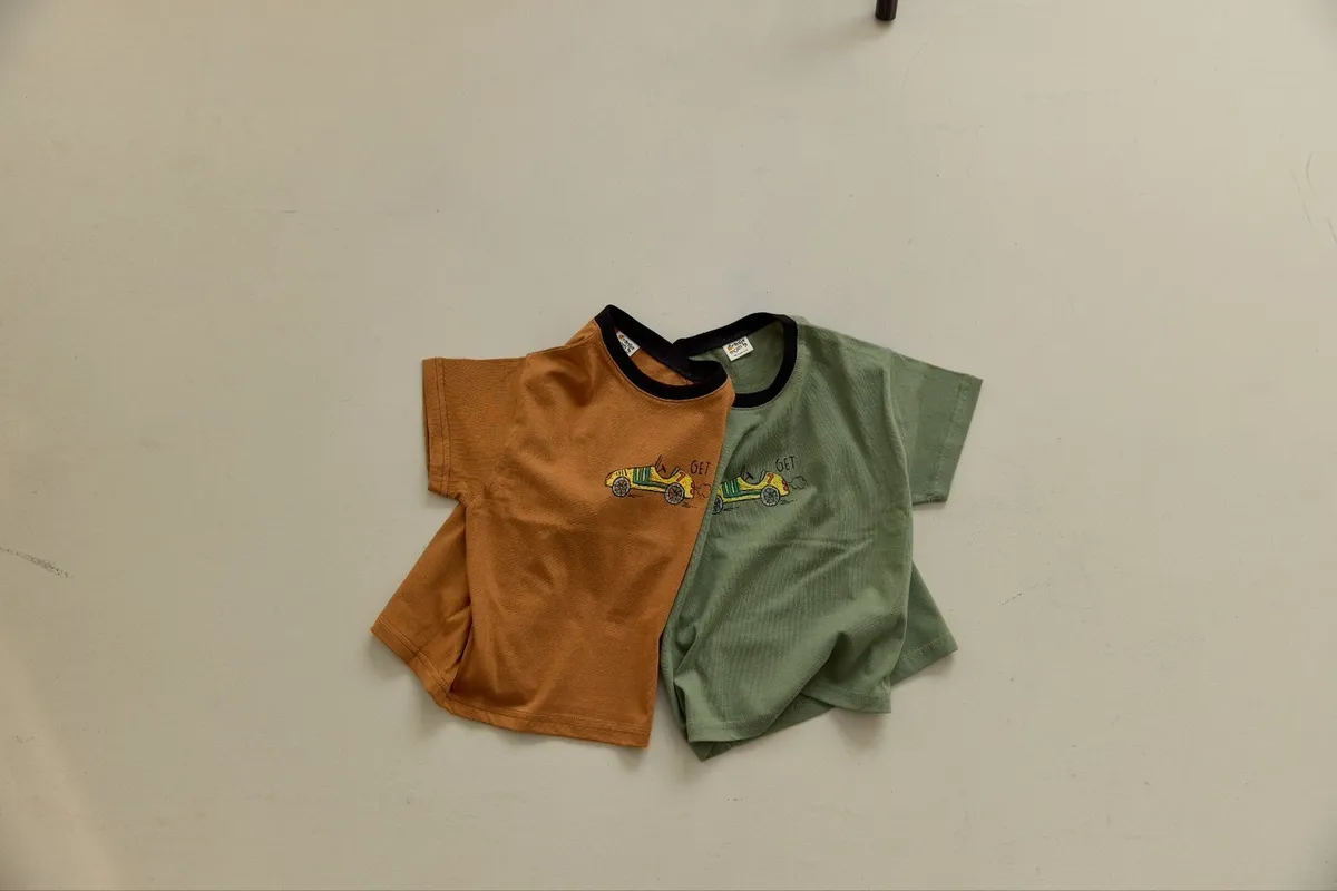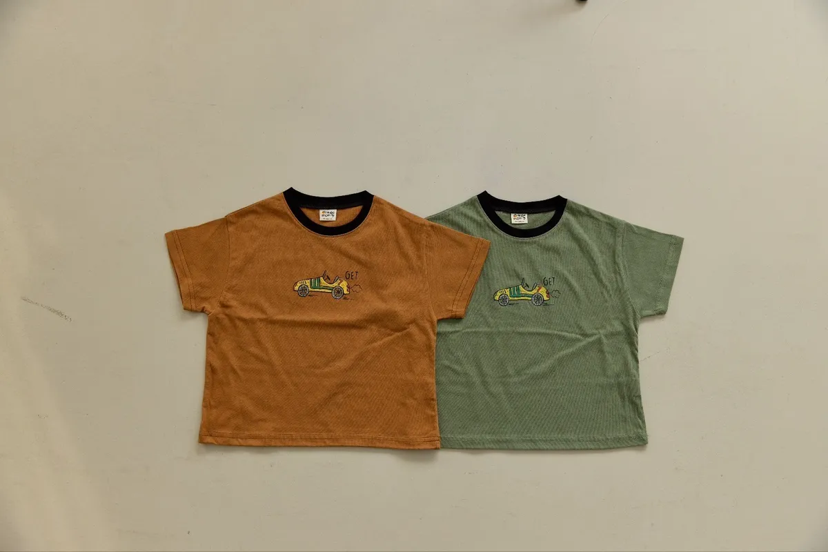 正韓小車車黑領短T(90-140cm現貨,版型偏小)