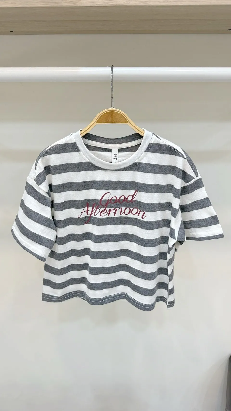 香水娜娜~條紋英⽂T(90-140cm現貨)
