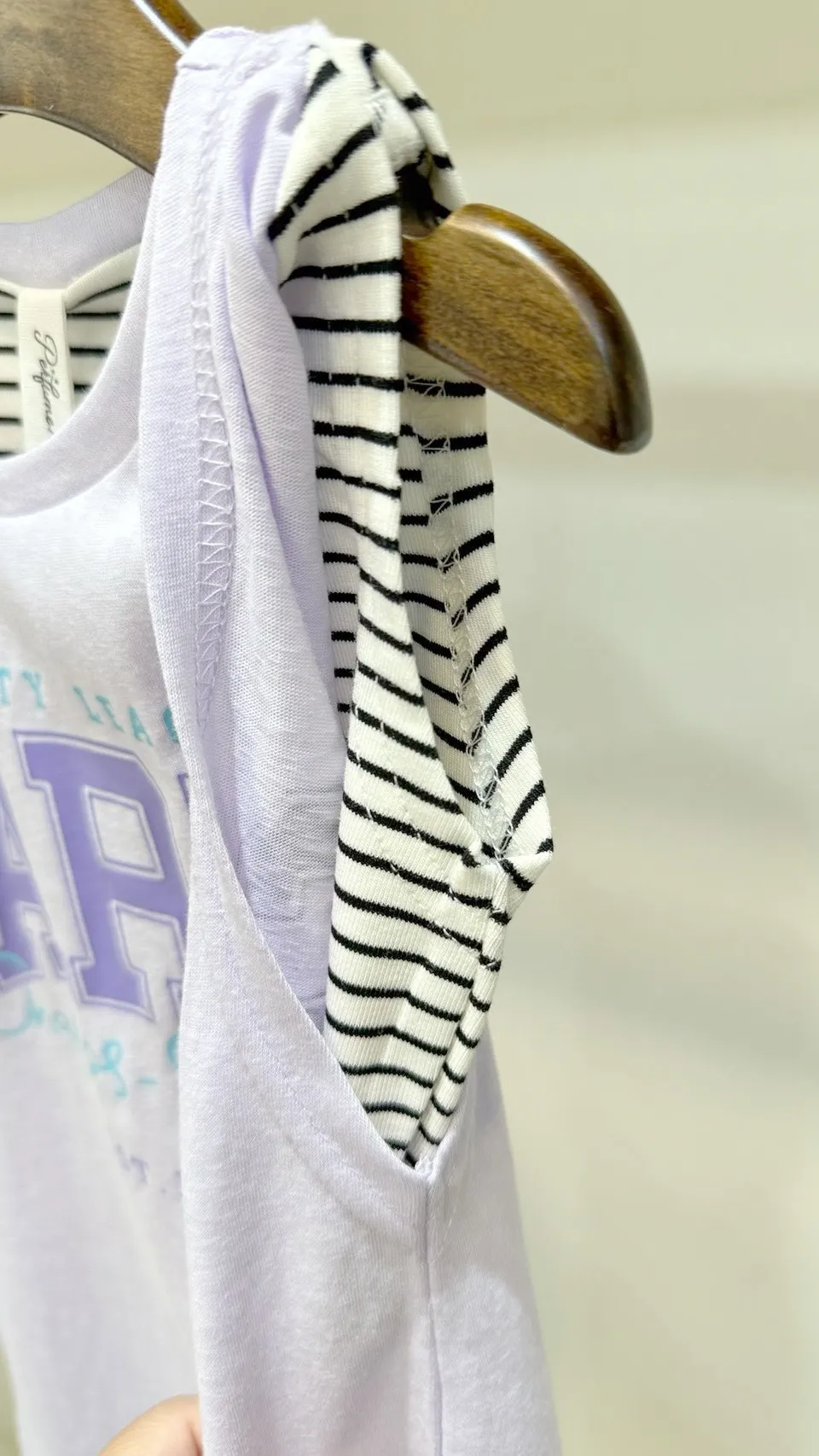 香水娜娜~⼤英⽂假兩件洋裝(90-140cm現貨)