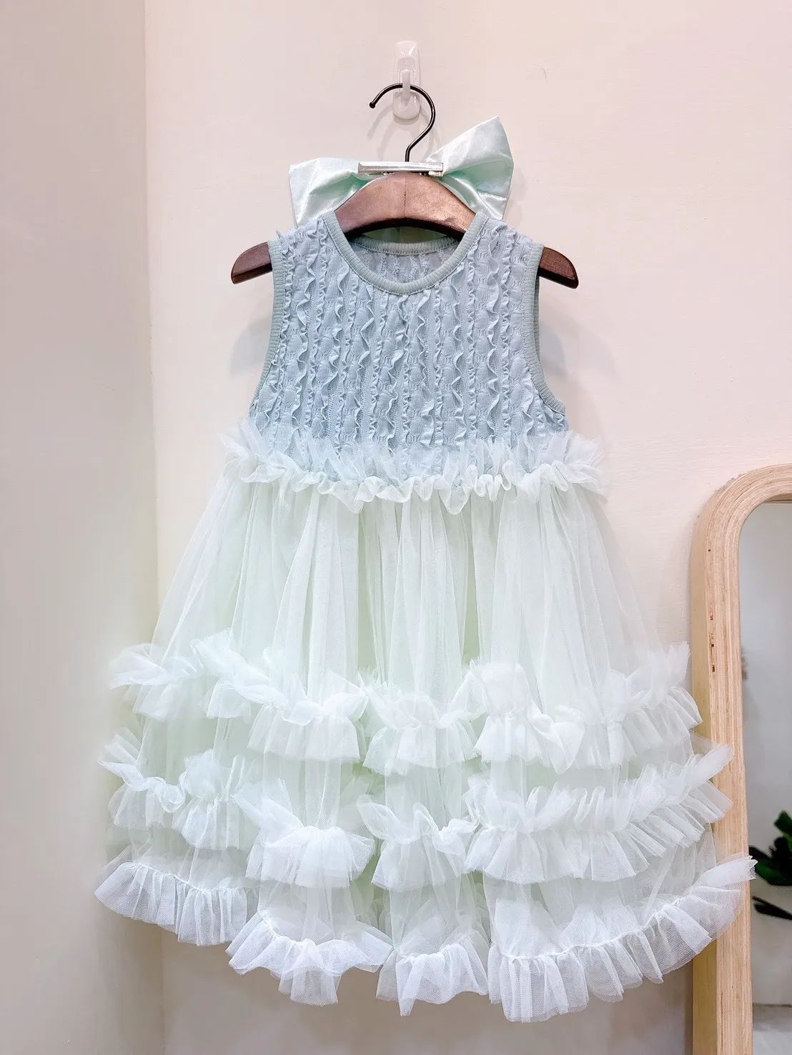 直條波浪蛋糕軟紗洋裝(90-130cm現貨)