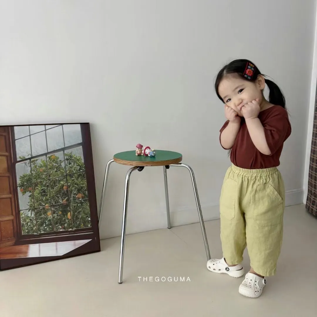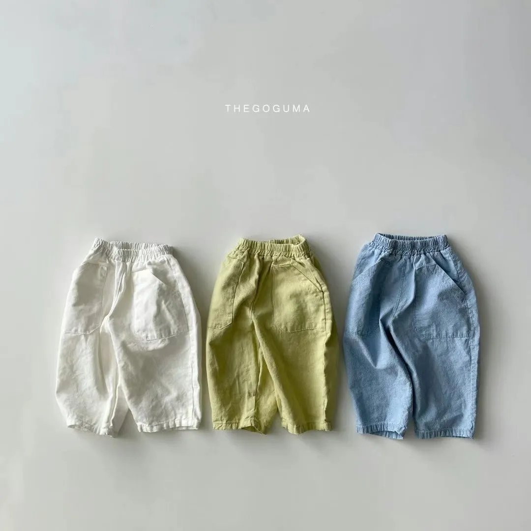 正韓雙口袋素色棉麻7-8分褲(90-150cm現貨)