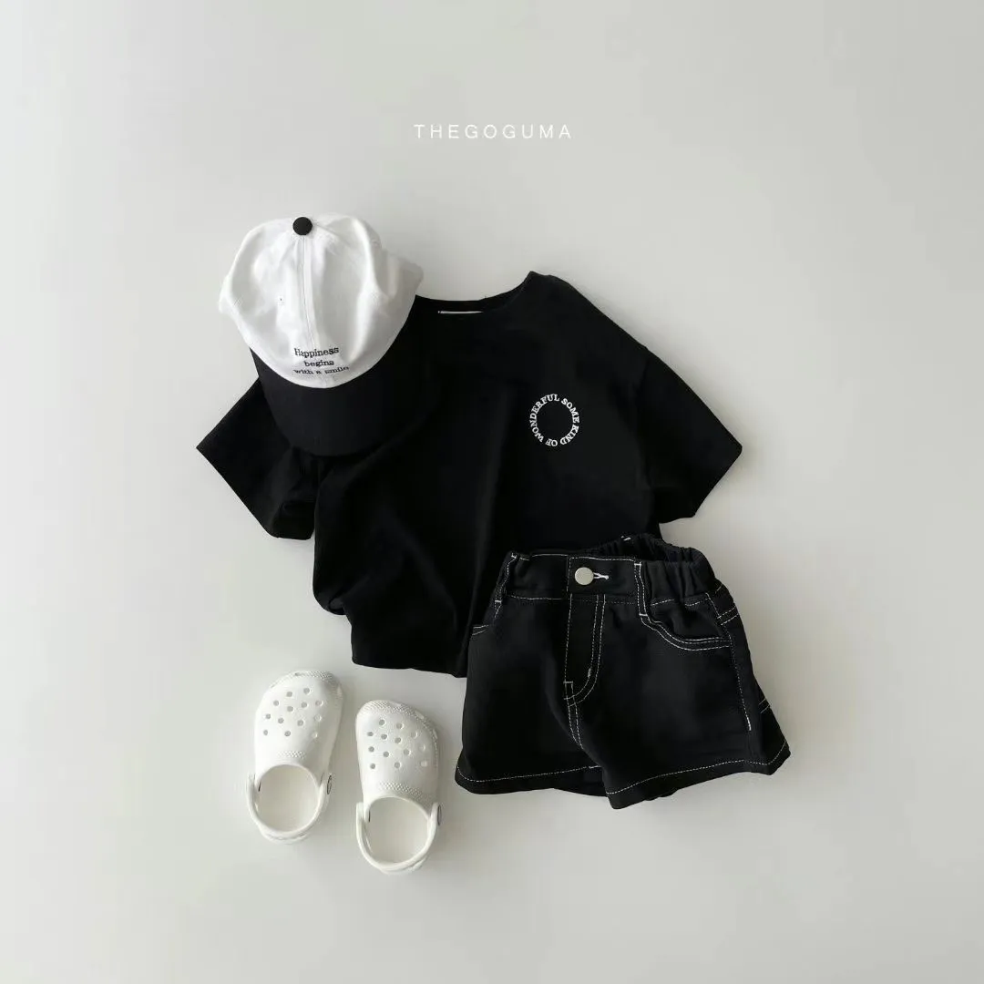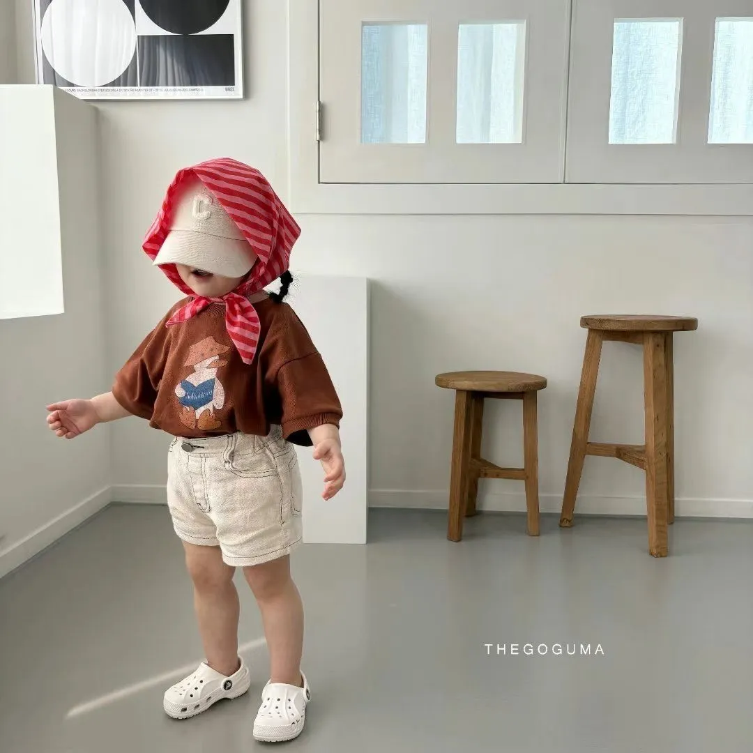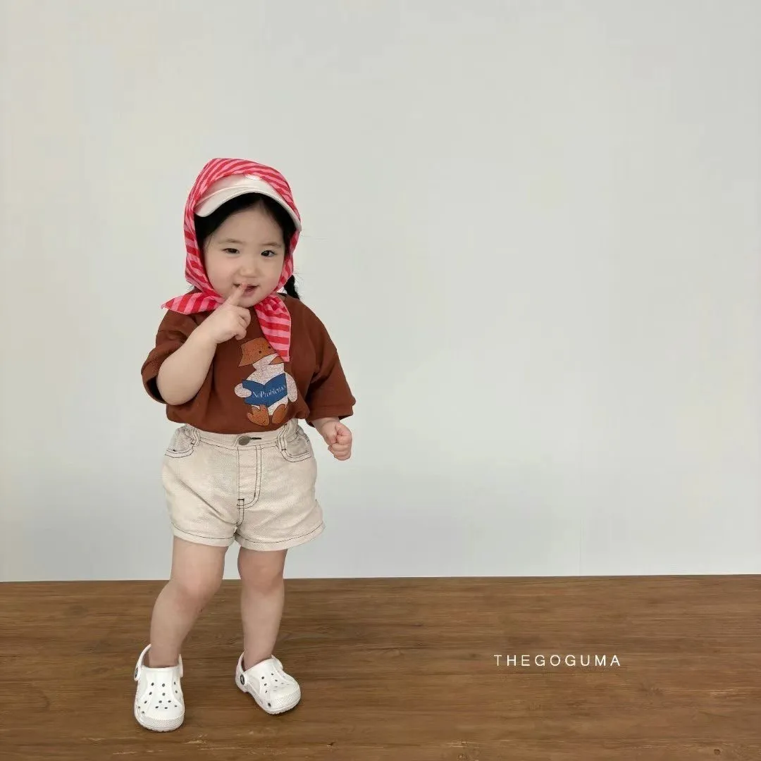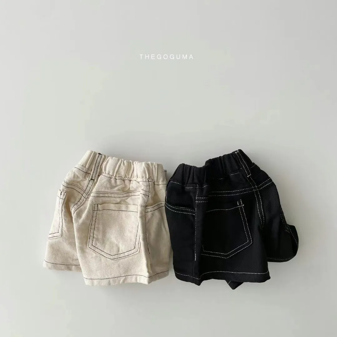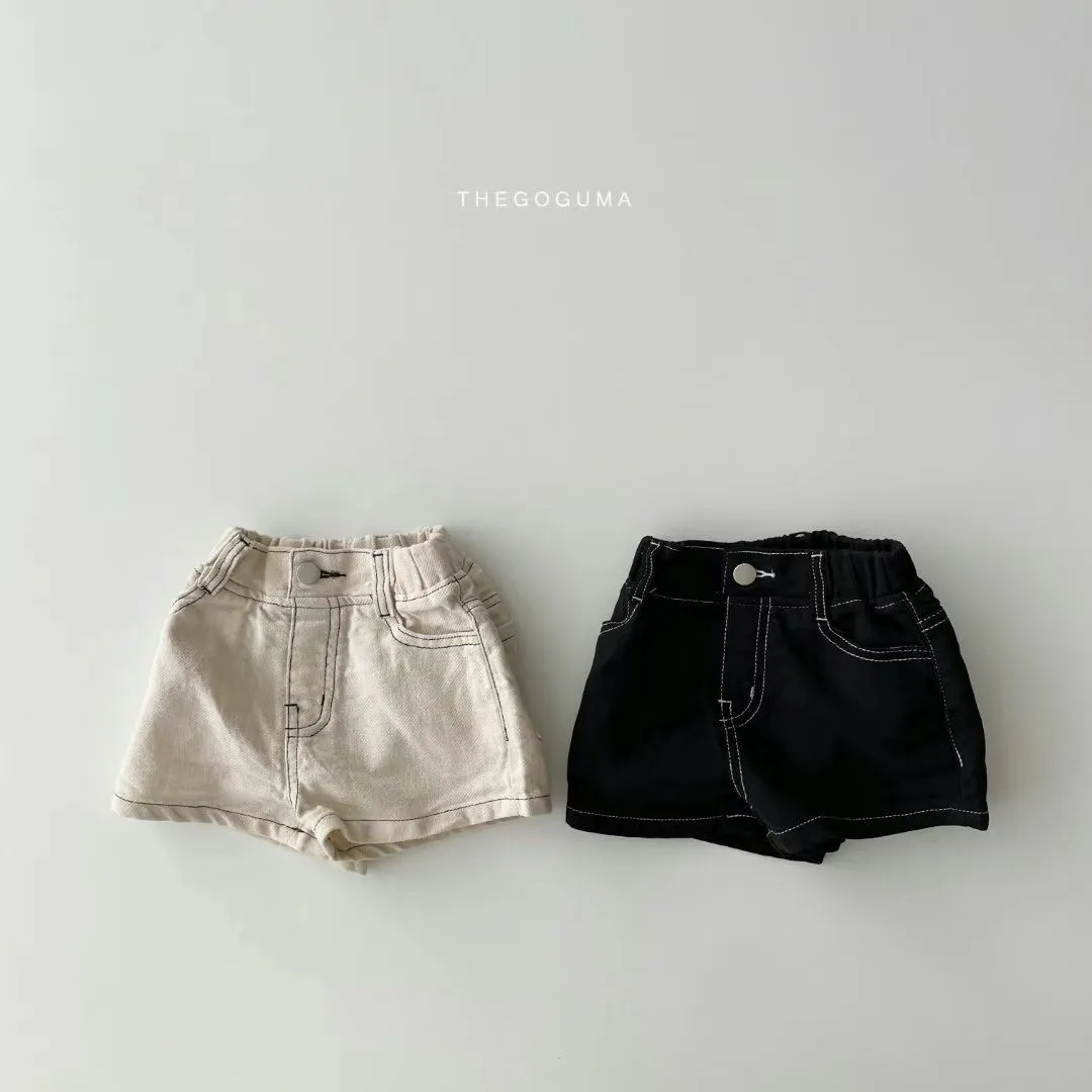 正韓撞色車線棉麻膝上短褲(90-155cm現貨)