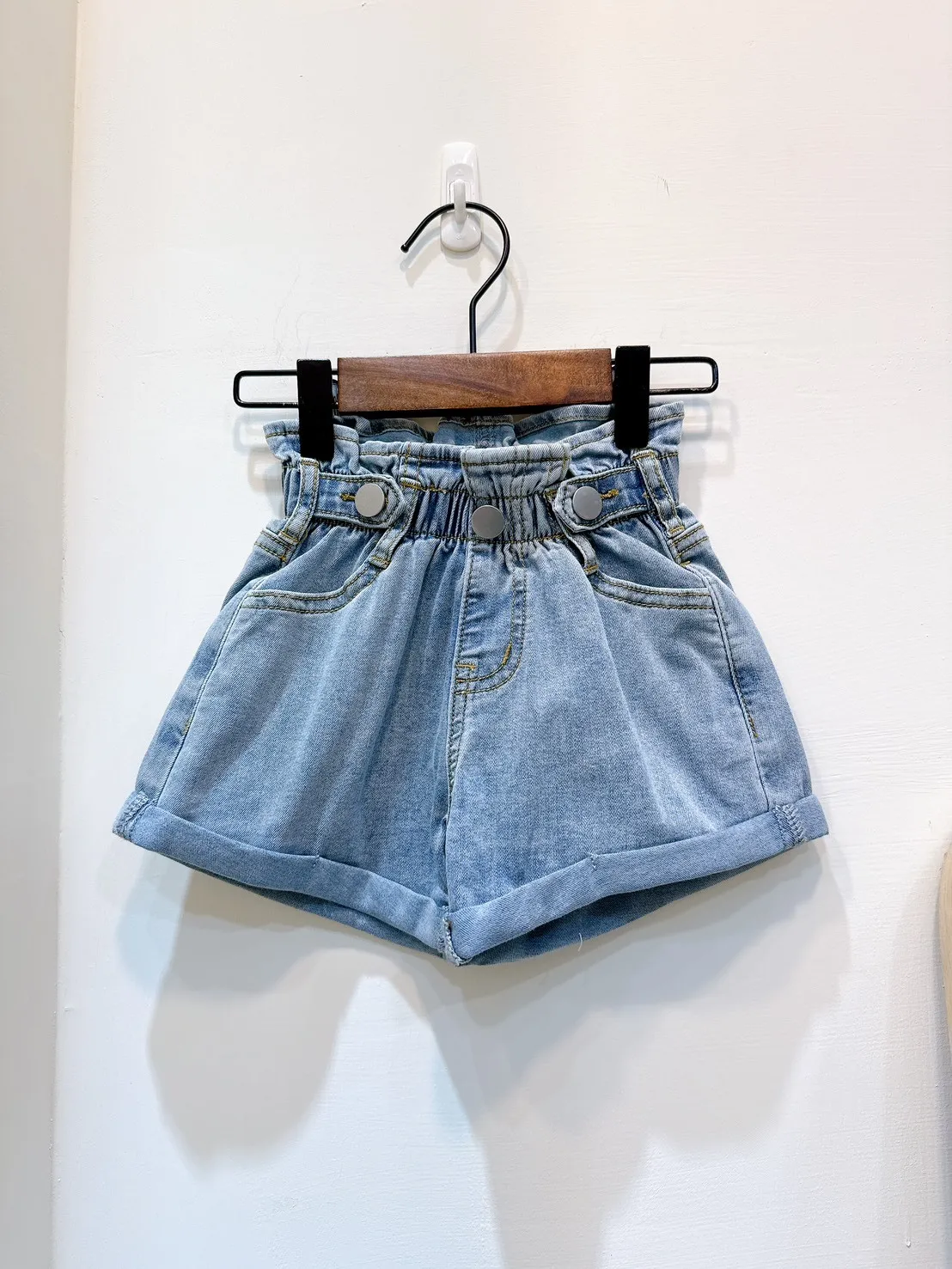 香水娜娜~反折腳⼝⽜仔中褲(90-160cm現貨)