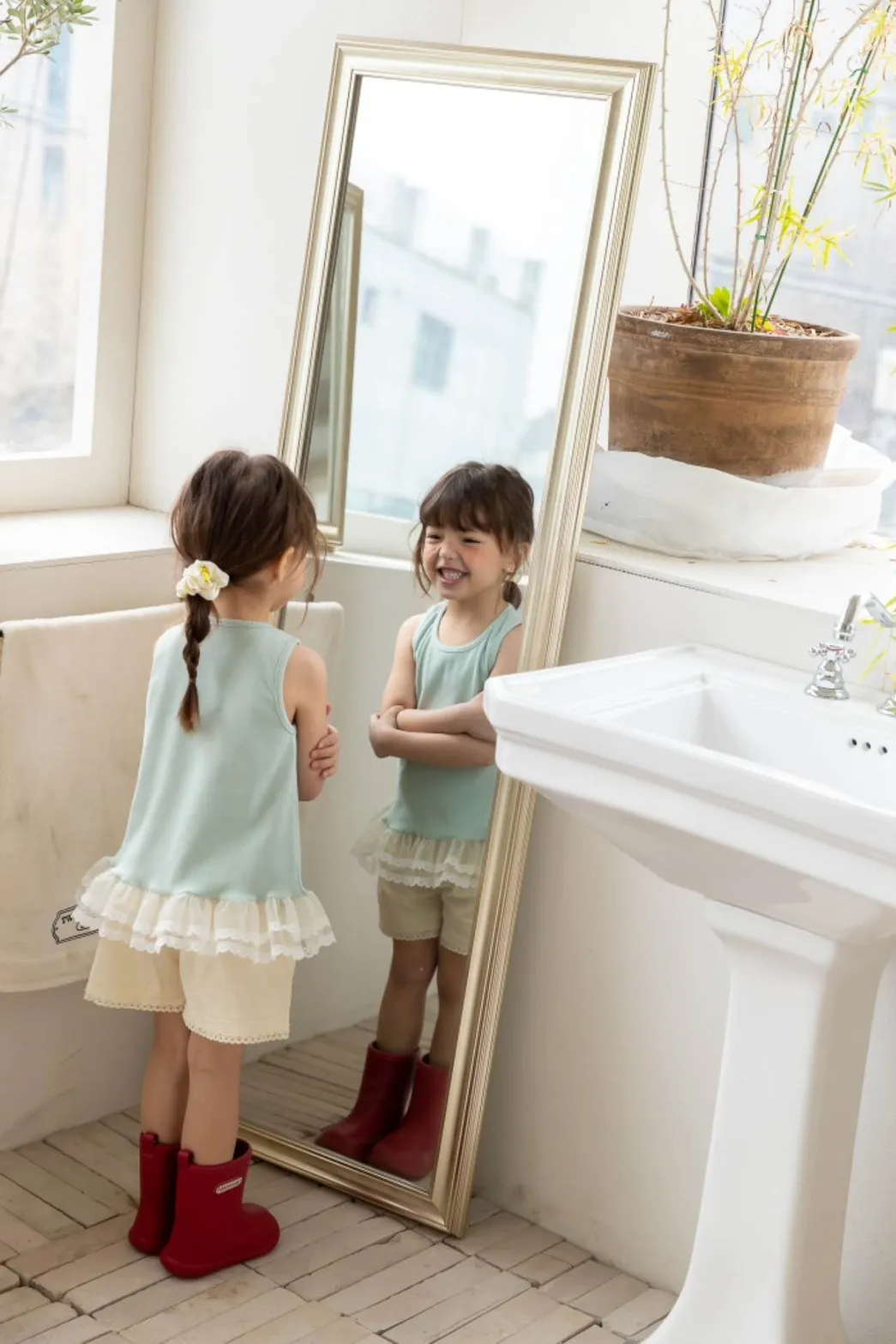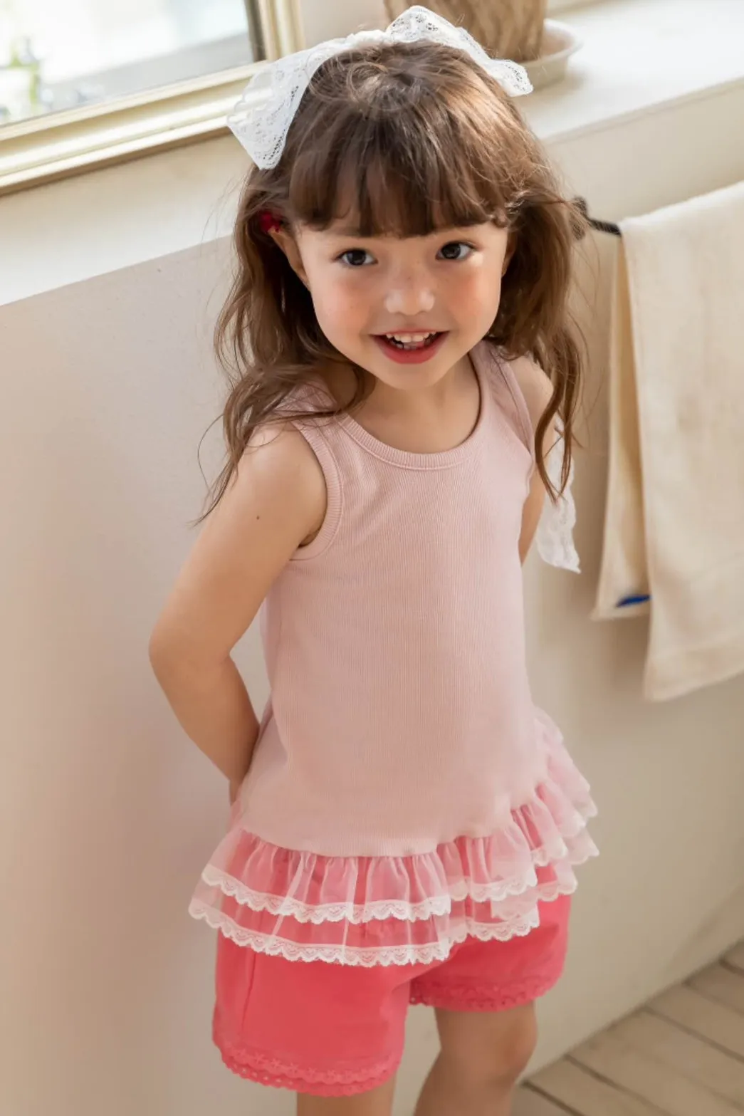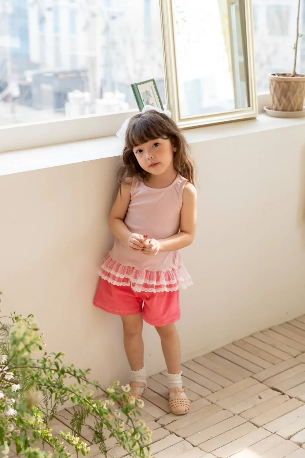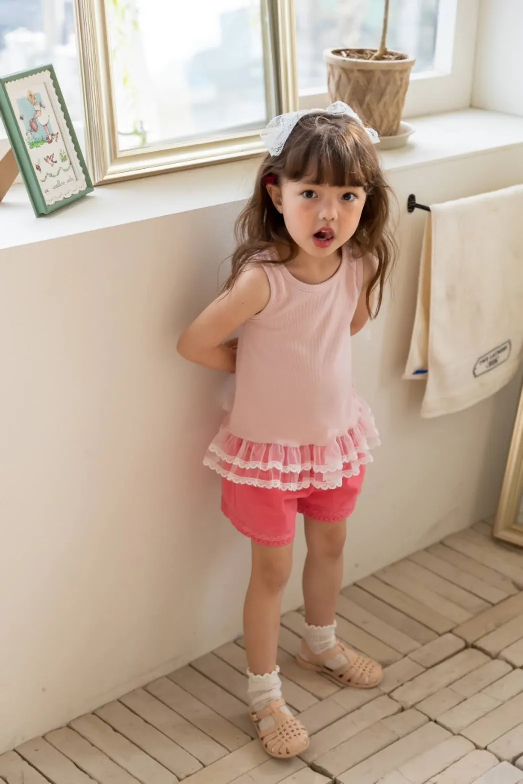 正韓拼接蕾絲無袖上衣(90-140cm現貨)