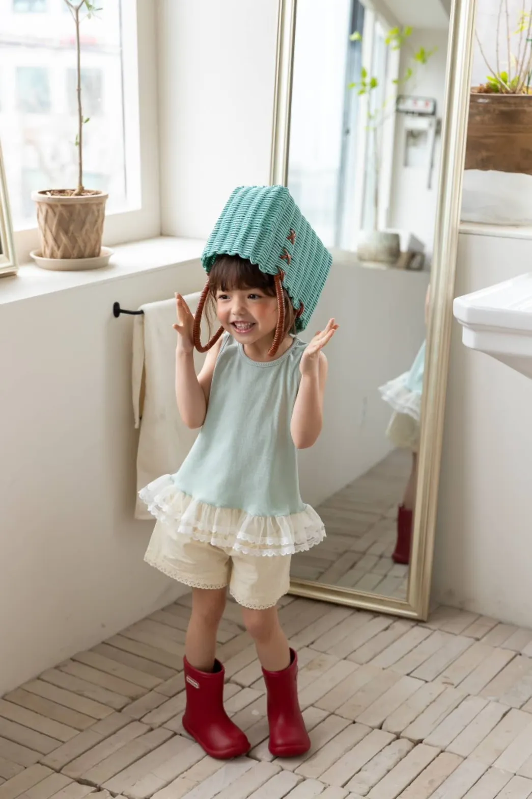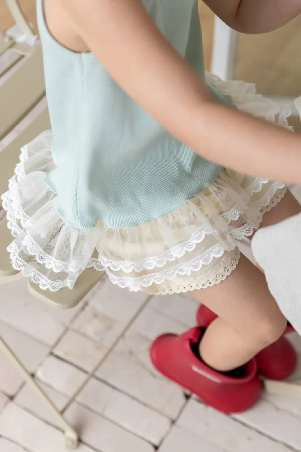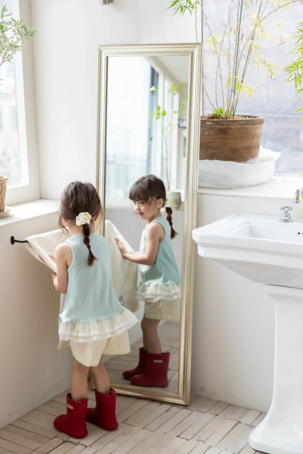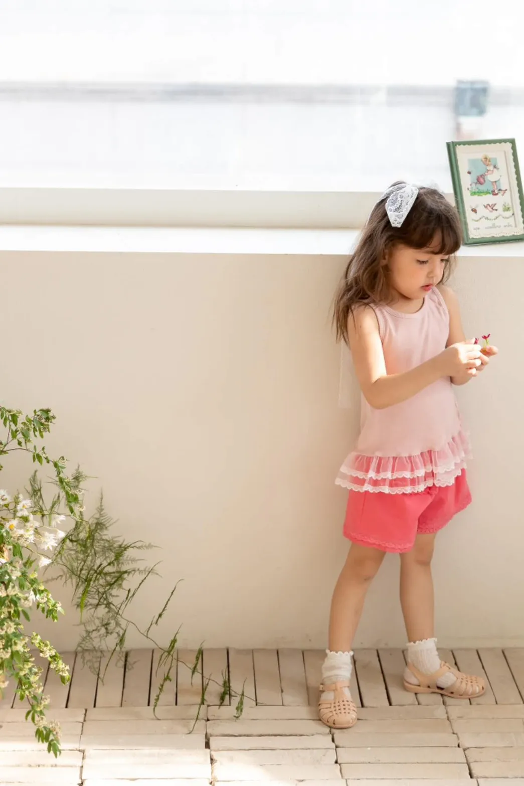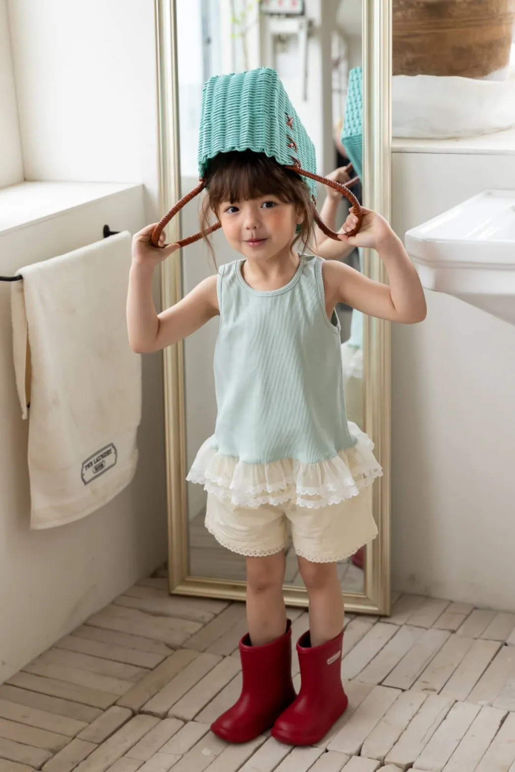 正韓拼接蕾絲無袖上衣(90-140cm現貨)