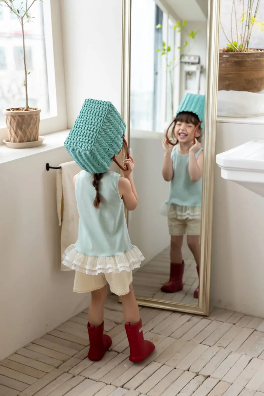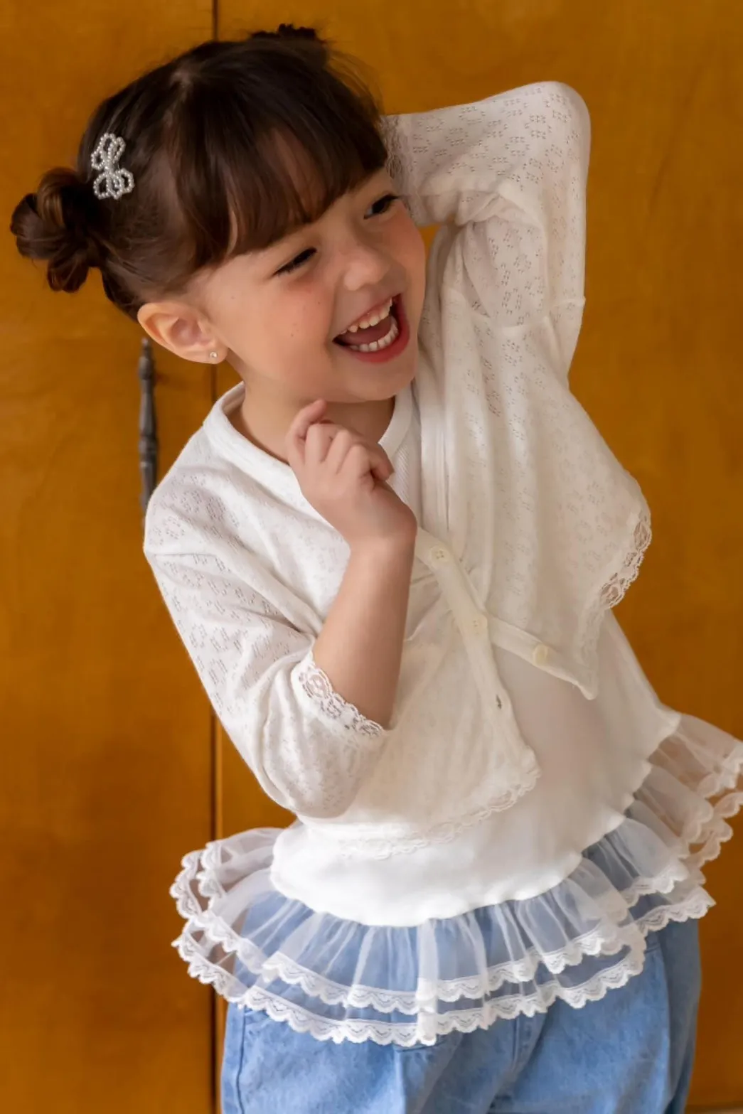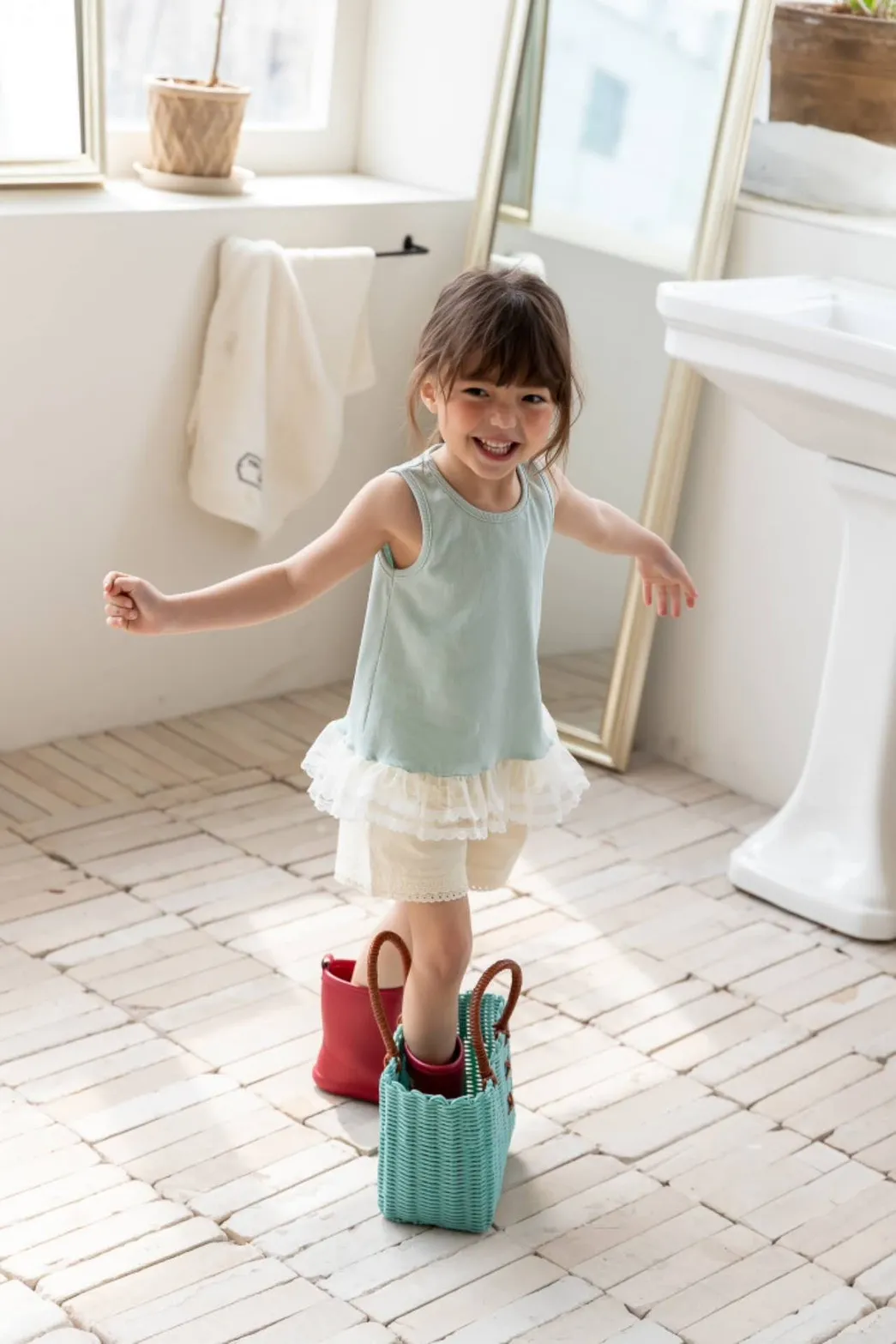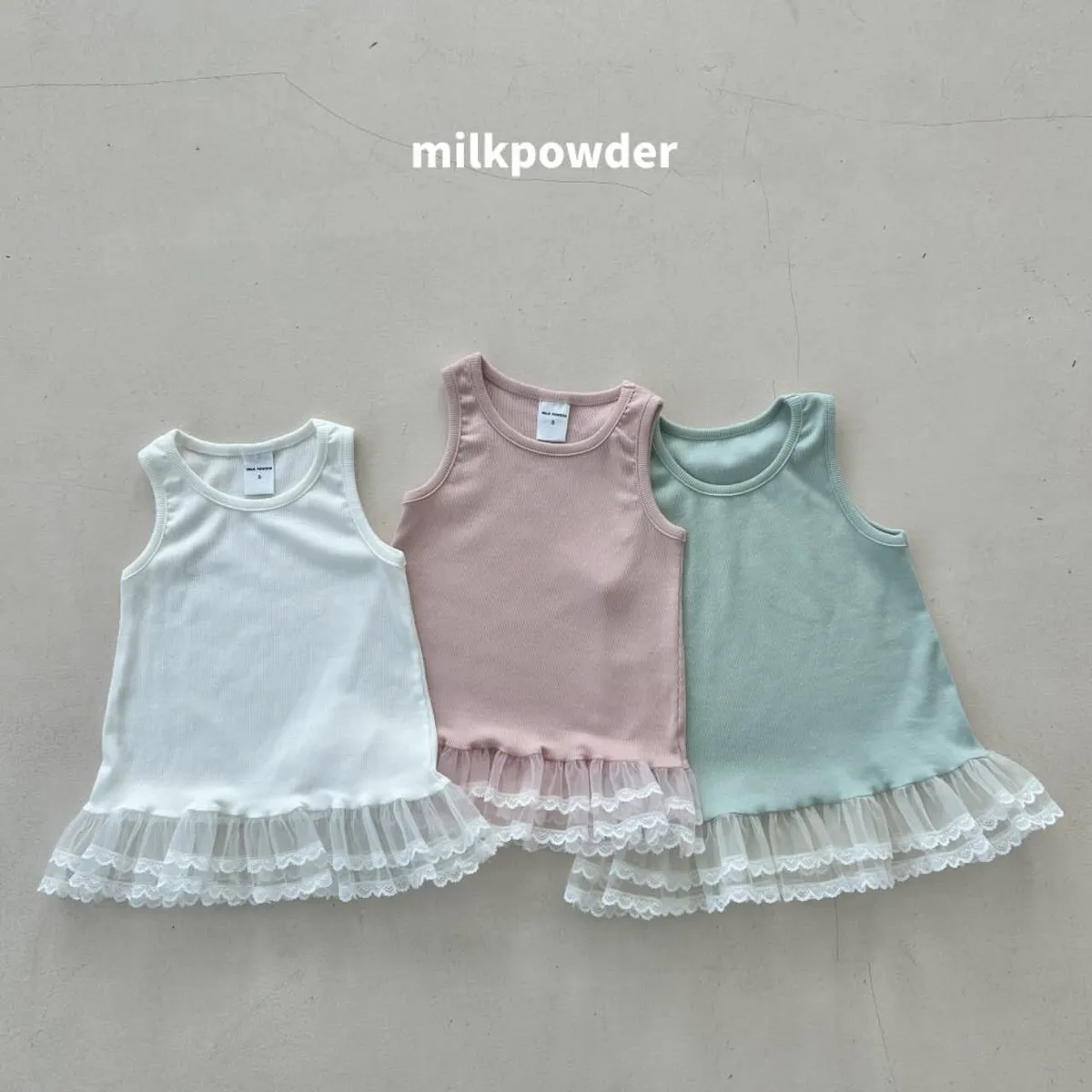 正韓拼接蕾絲無袖上衣(90-140cm現貨)