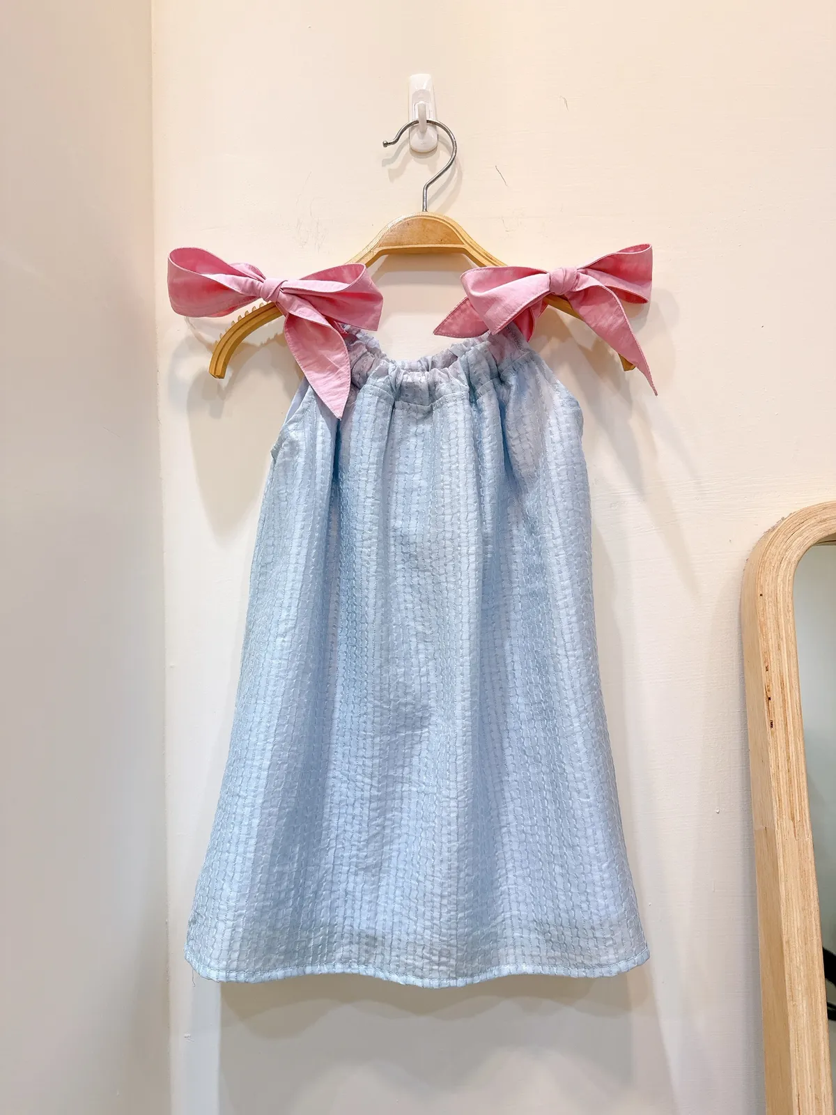 香水娜娜~提花布蝴蝶結肩帶洋裝(90-140cm現貨)