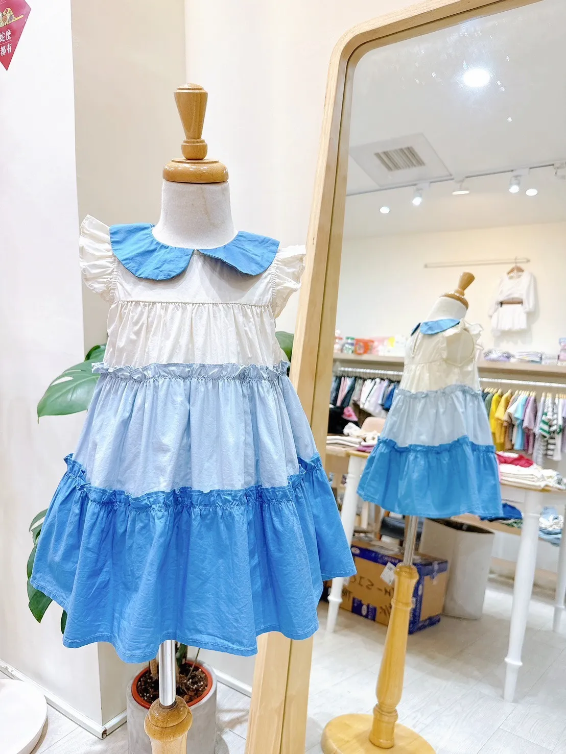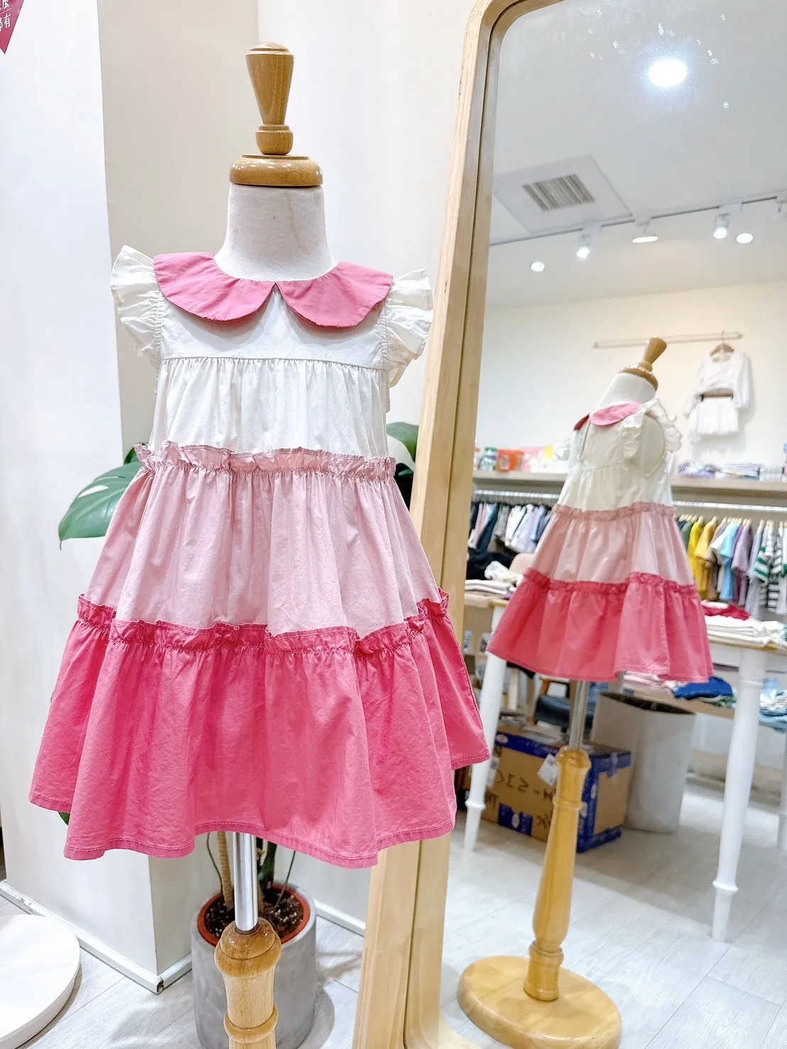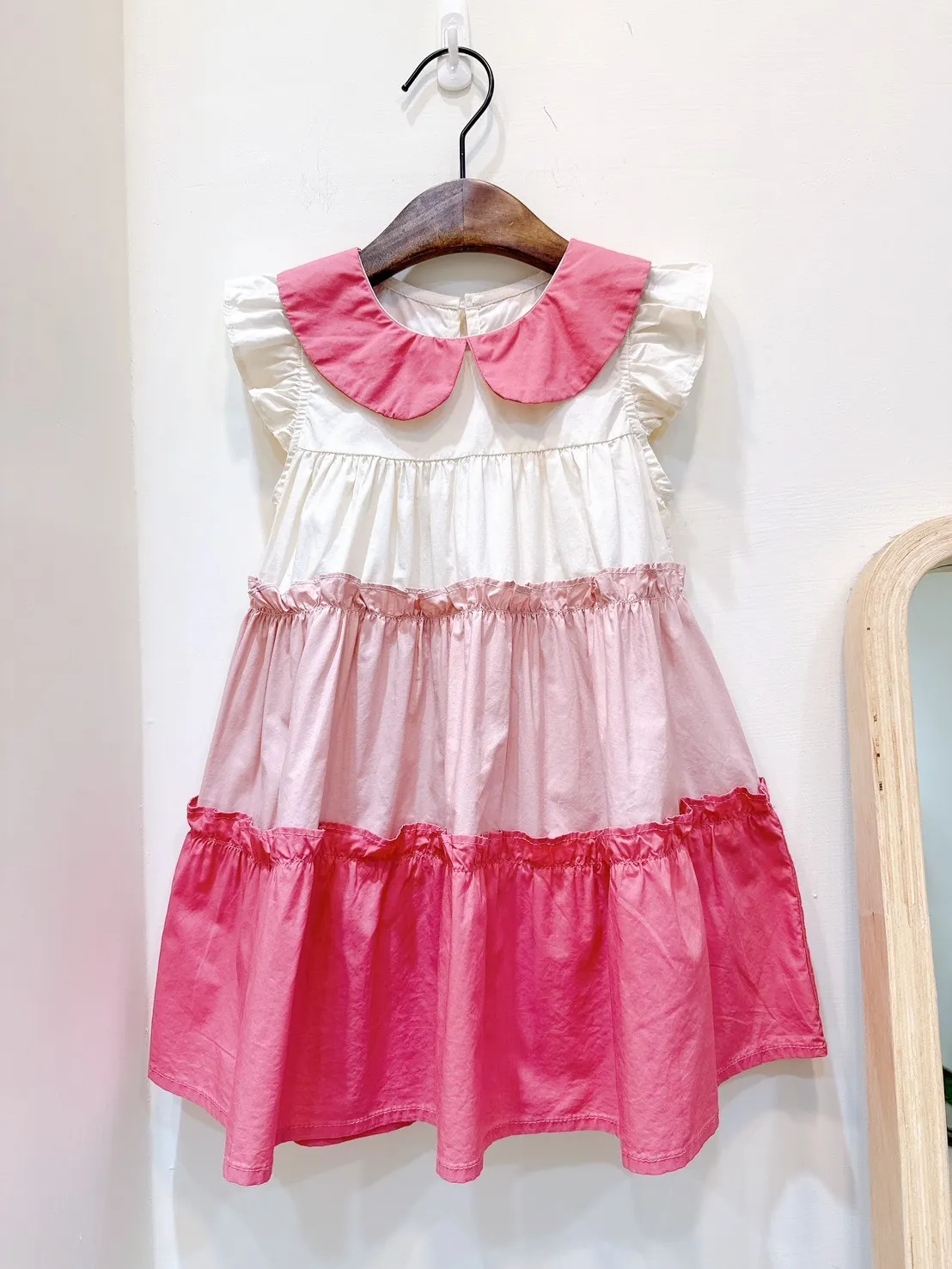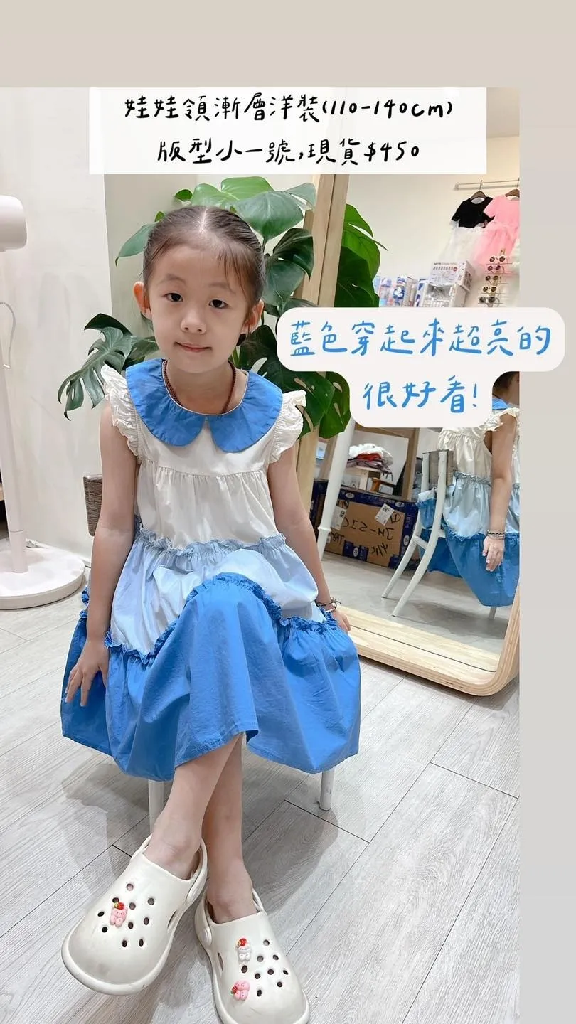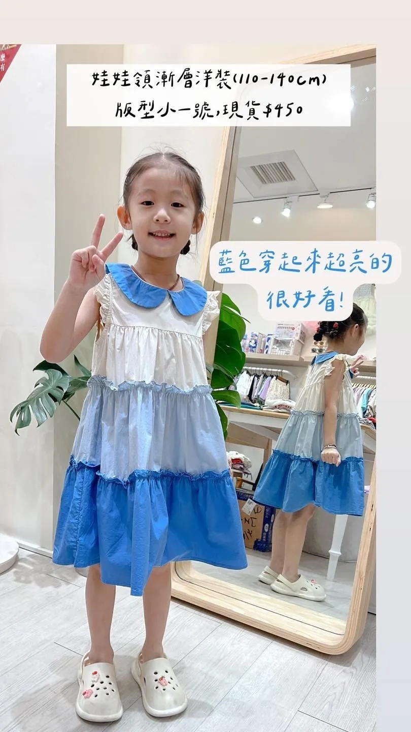 娃娃領漸層洋裝(100-140cm)版型小一號,現貨