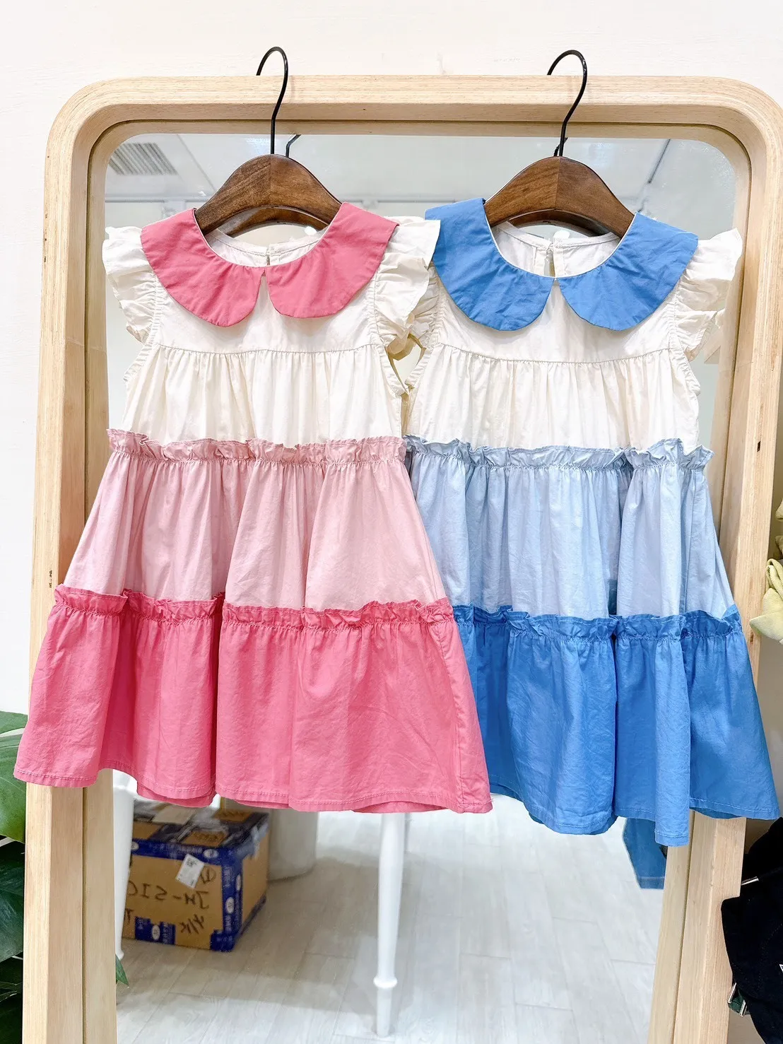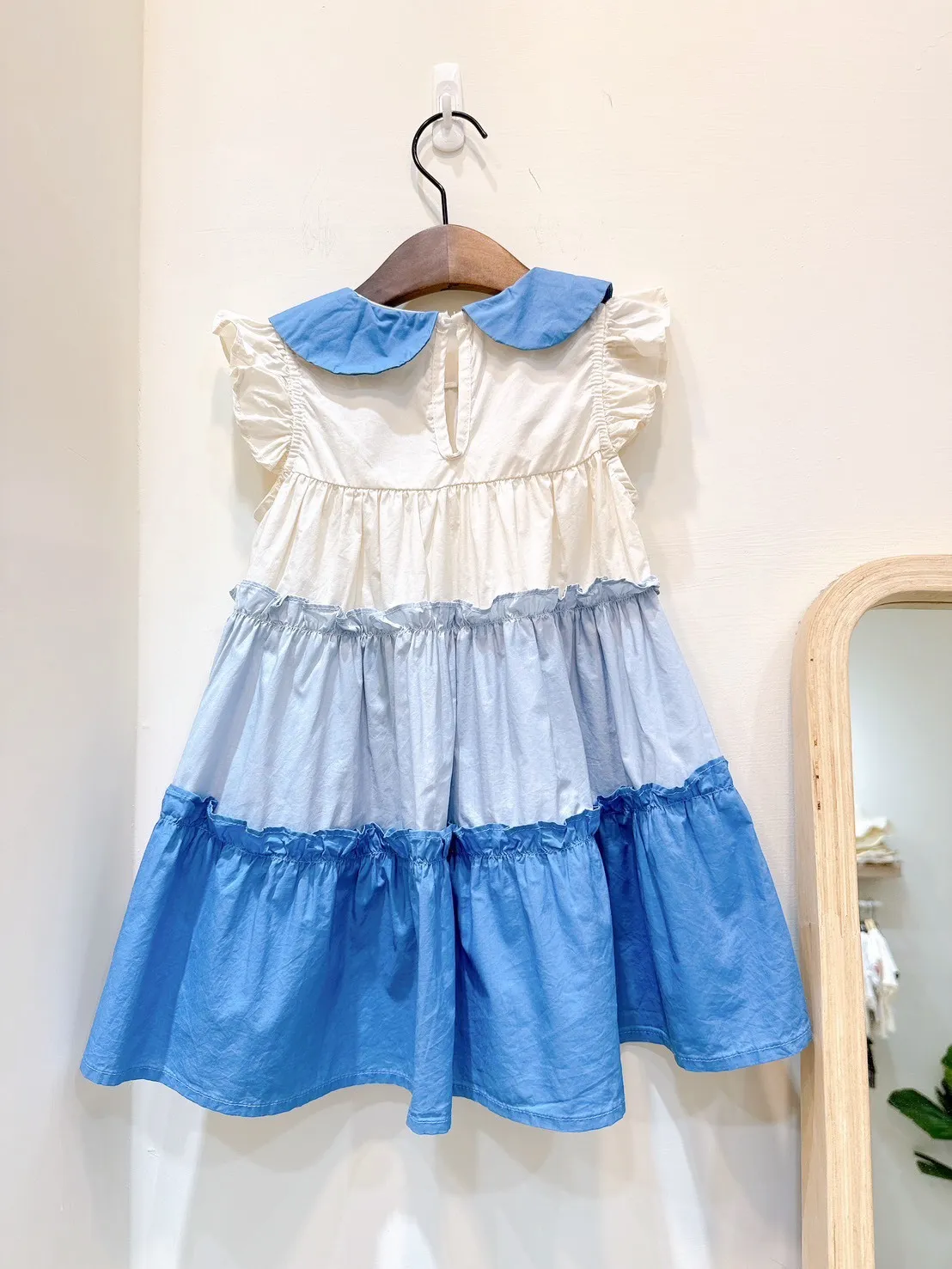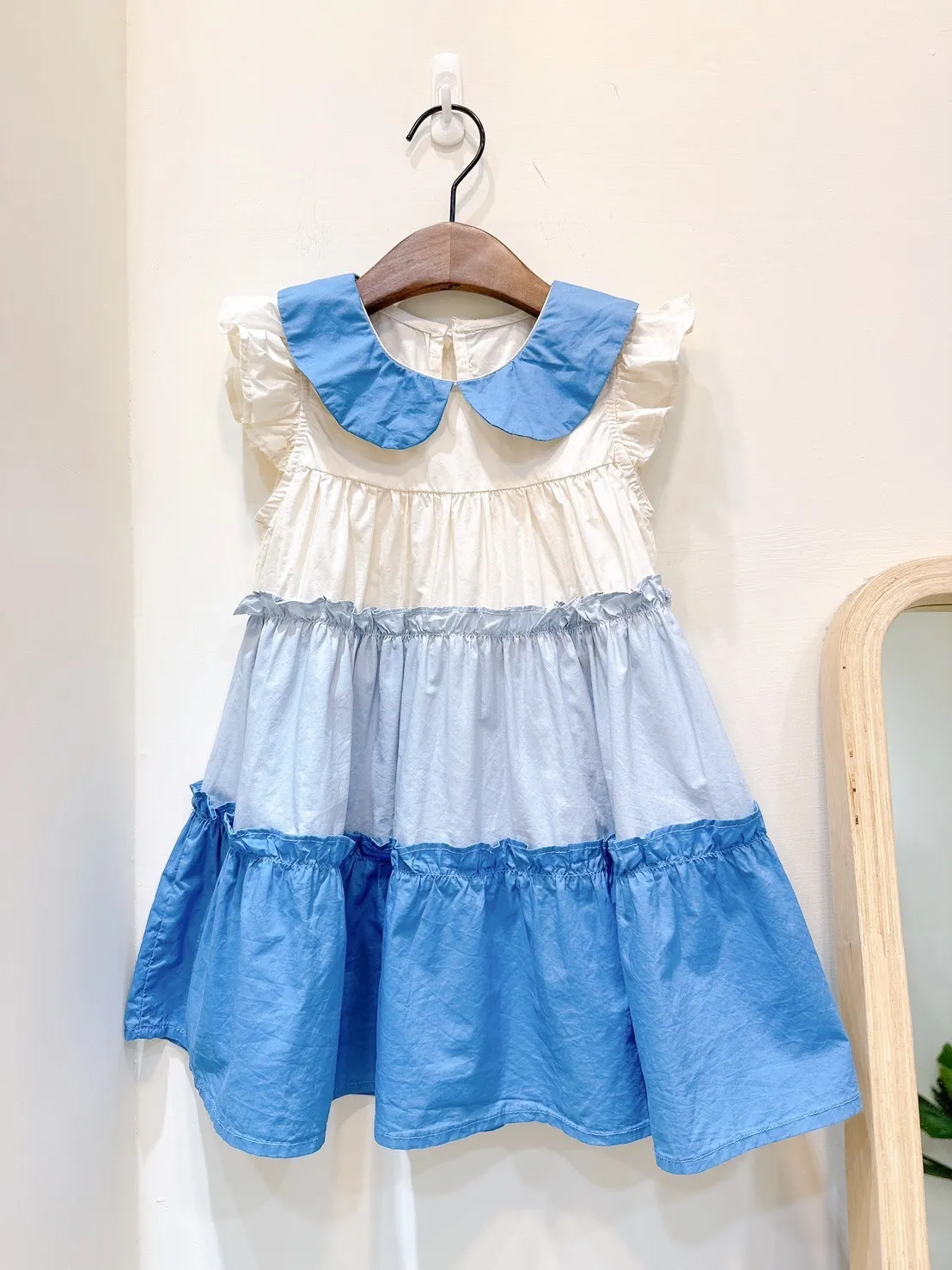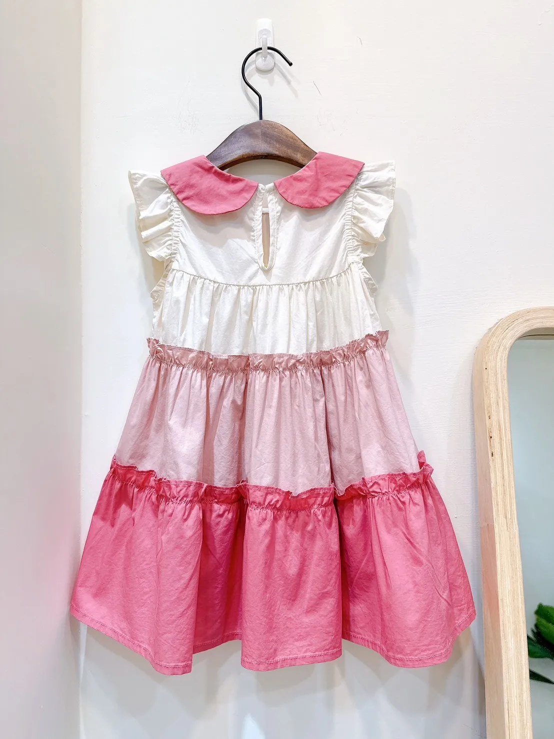 娃娃領漸層洋裝(100-140cm)版型小一號,現貨