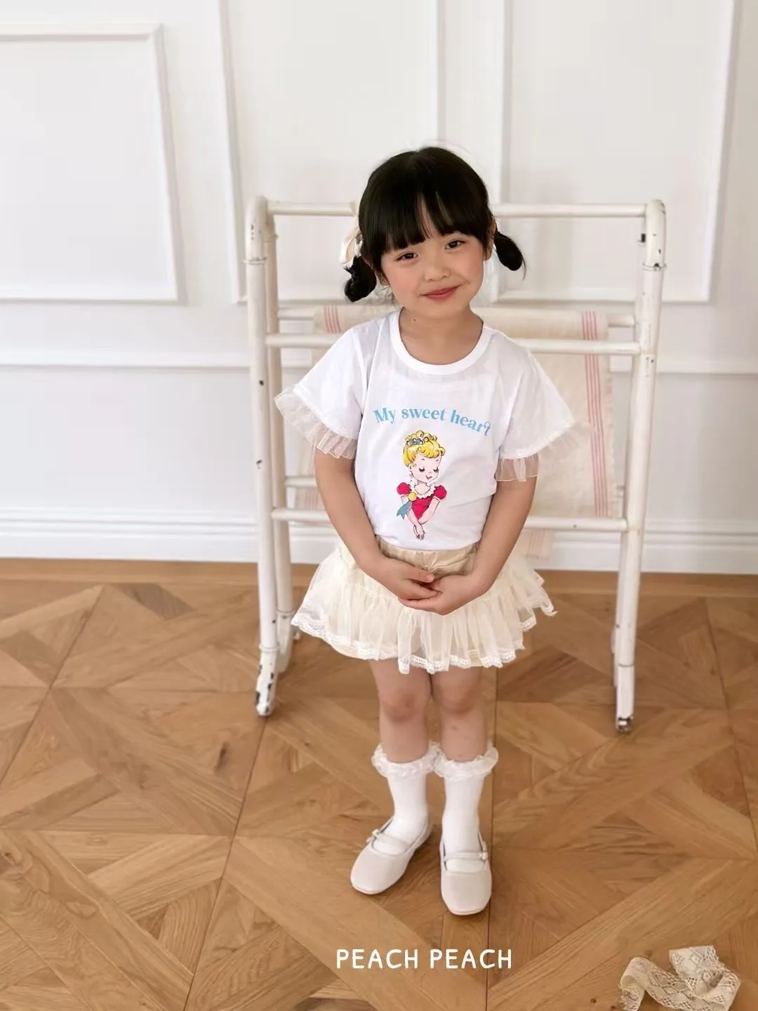 正韓蕾絲袖公主短T(90-130cm現貨)