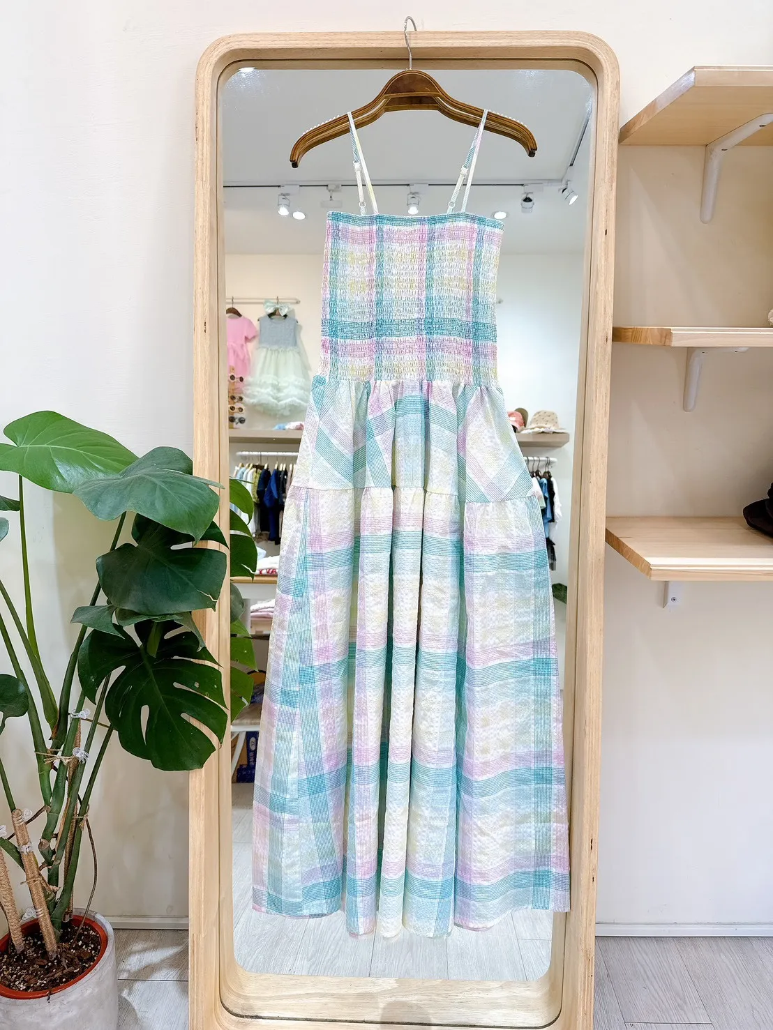 香水娜娜~彩色大格吊帶洋裝(大人的,170CM現貨)