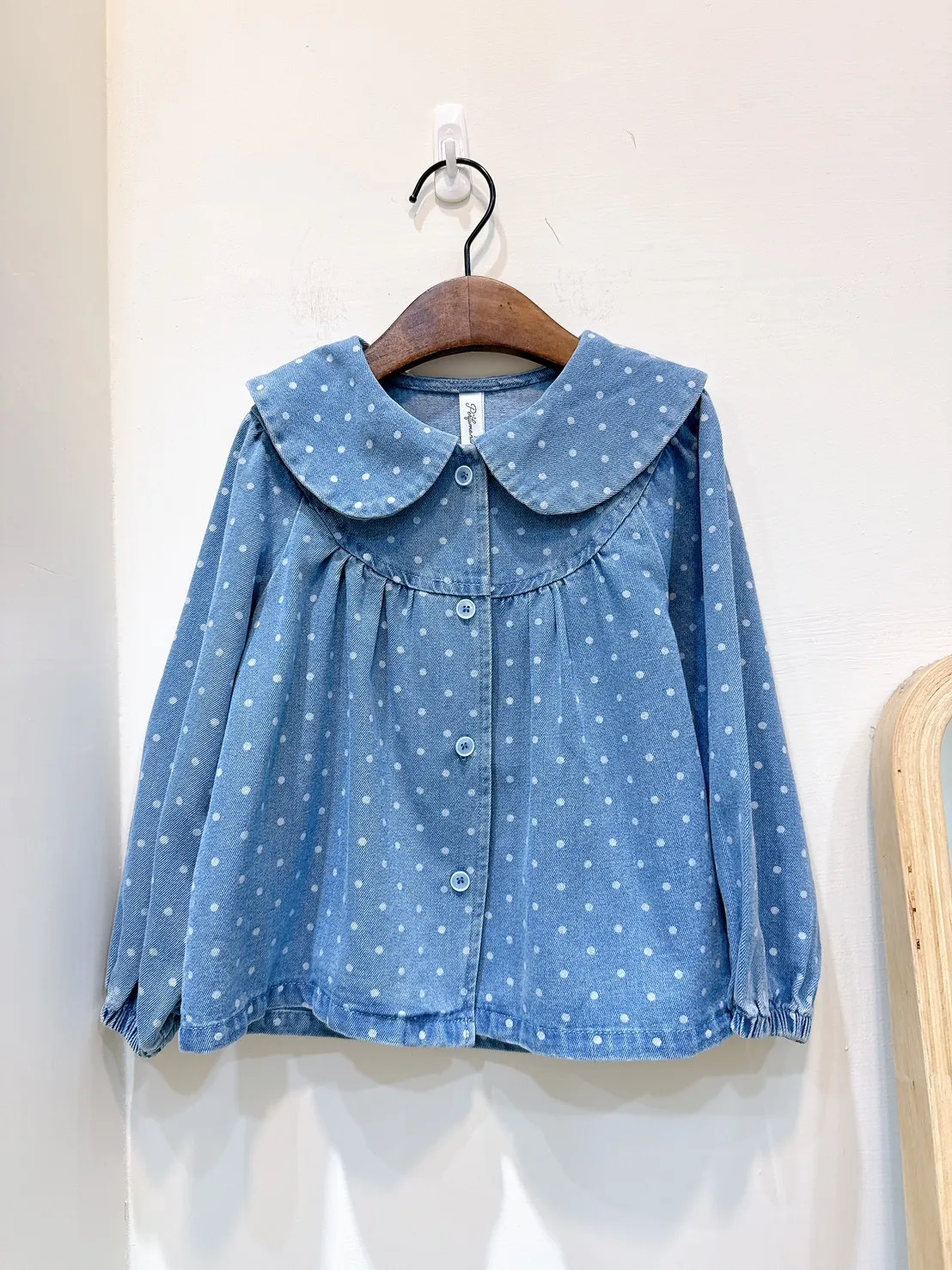 香水娜娜~波點⽜仔襯衣(90-140cm現貨)