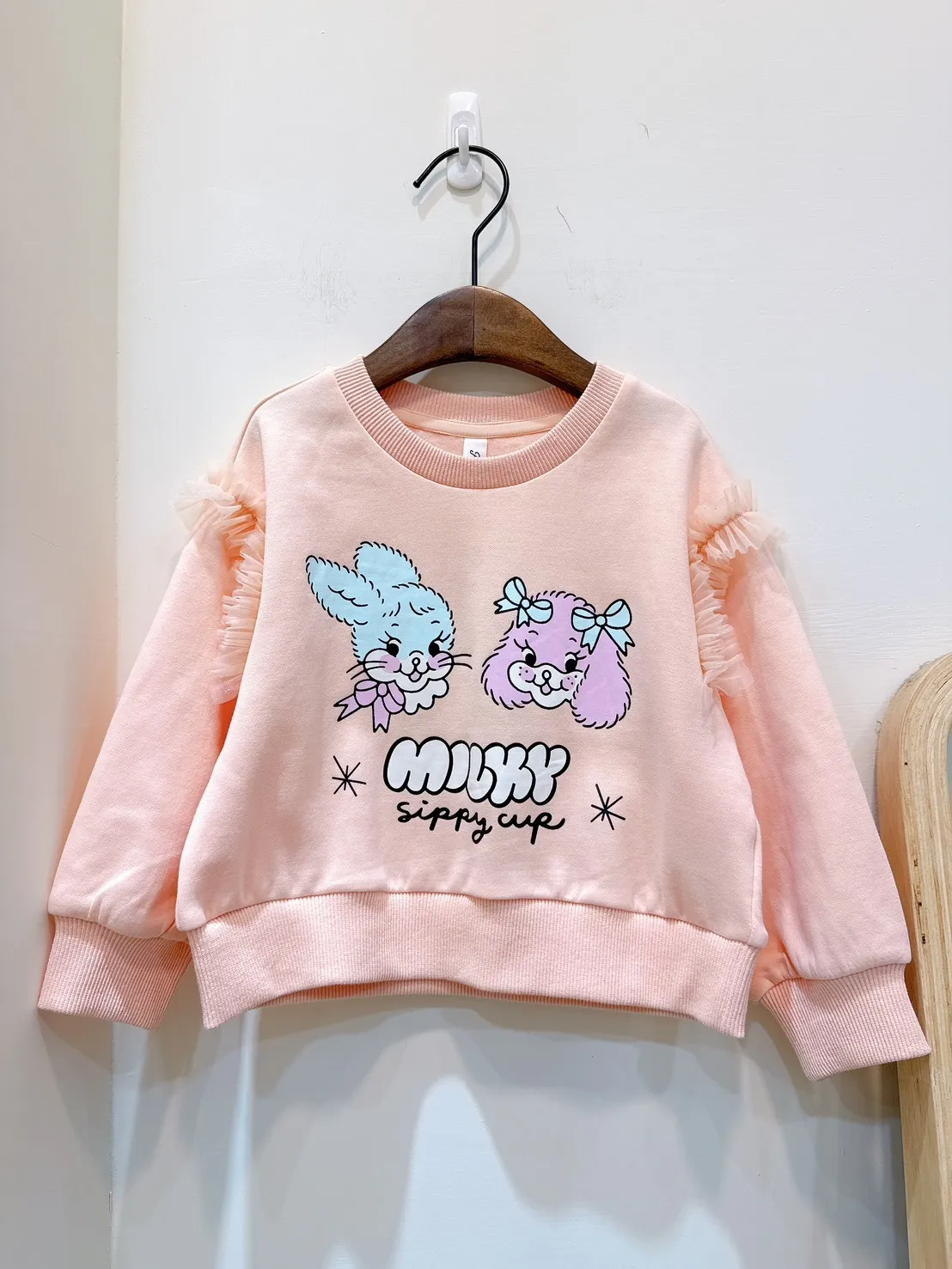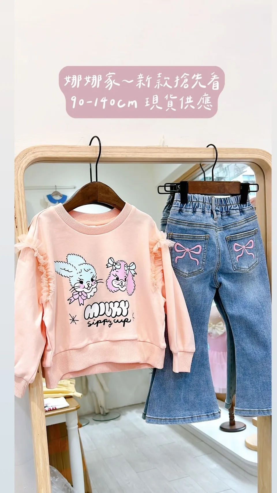 香水娜娜~兩隻兔⼦印花衛衣(90-140cm現貨)