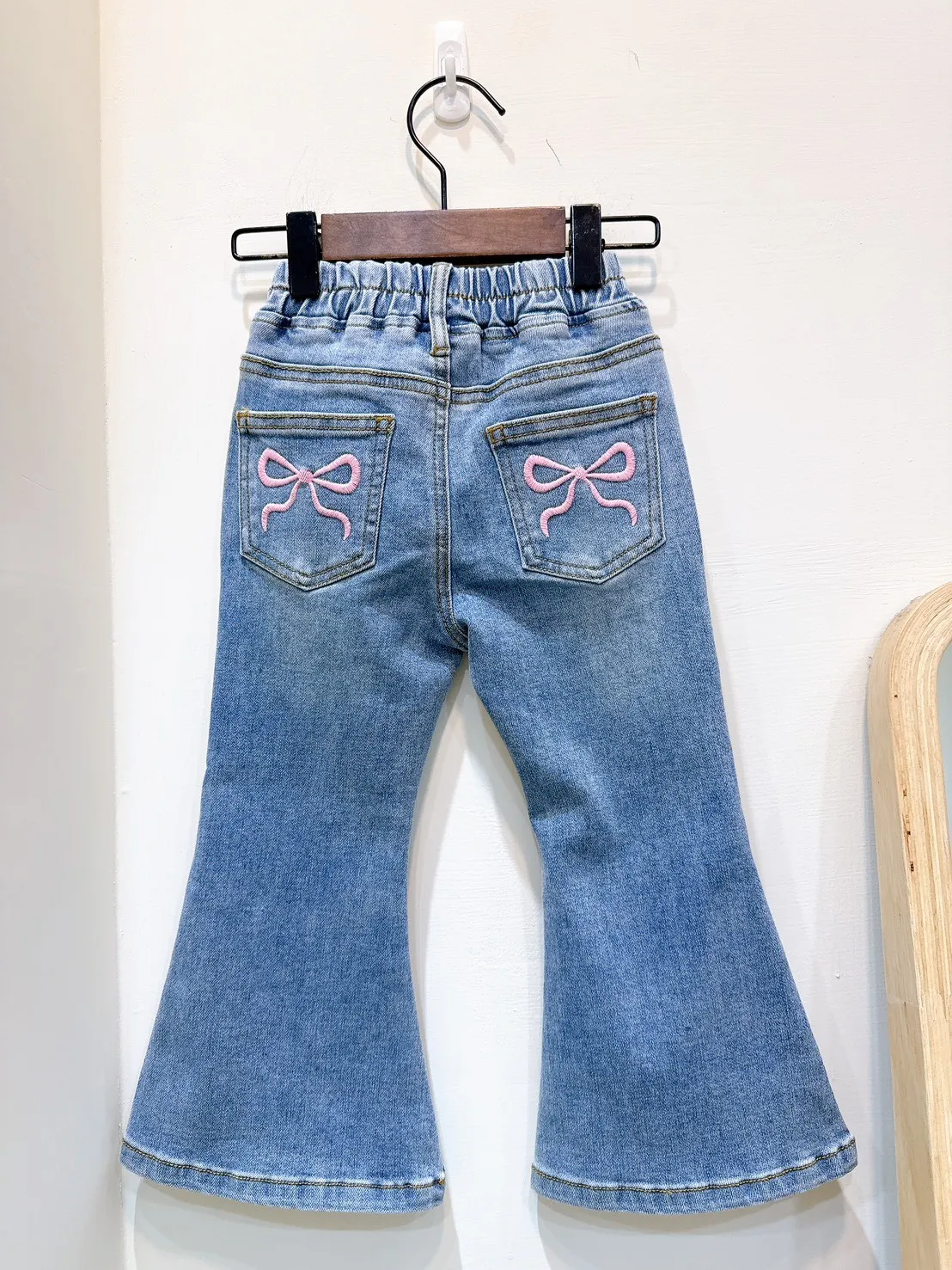 香水娜娜~後袋繡蝴蝶結⽜仔褲(90-140cm現貨)
