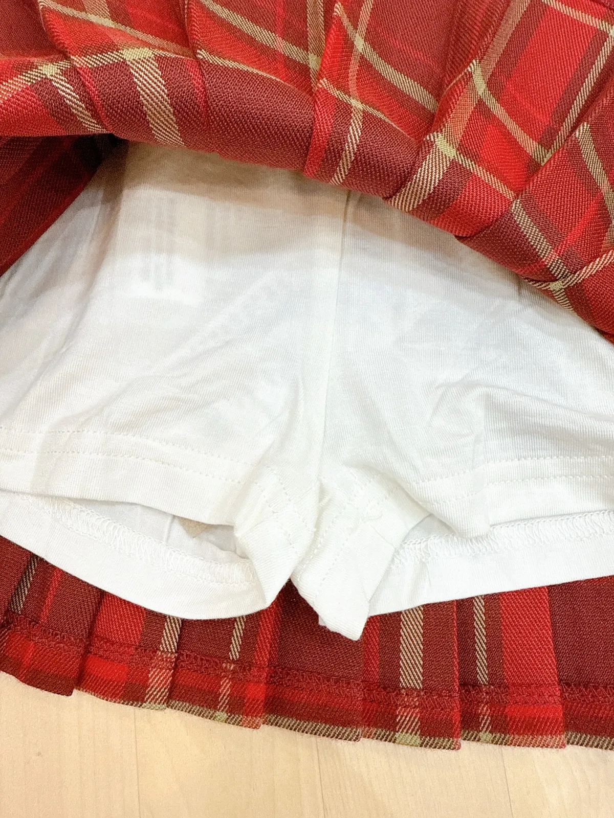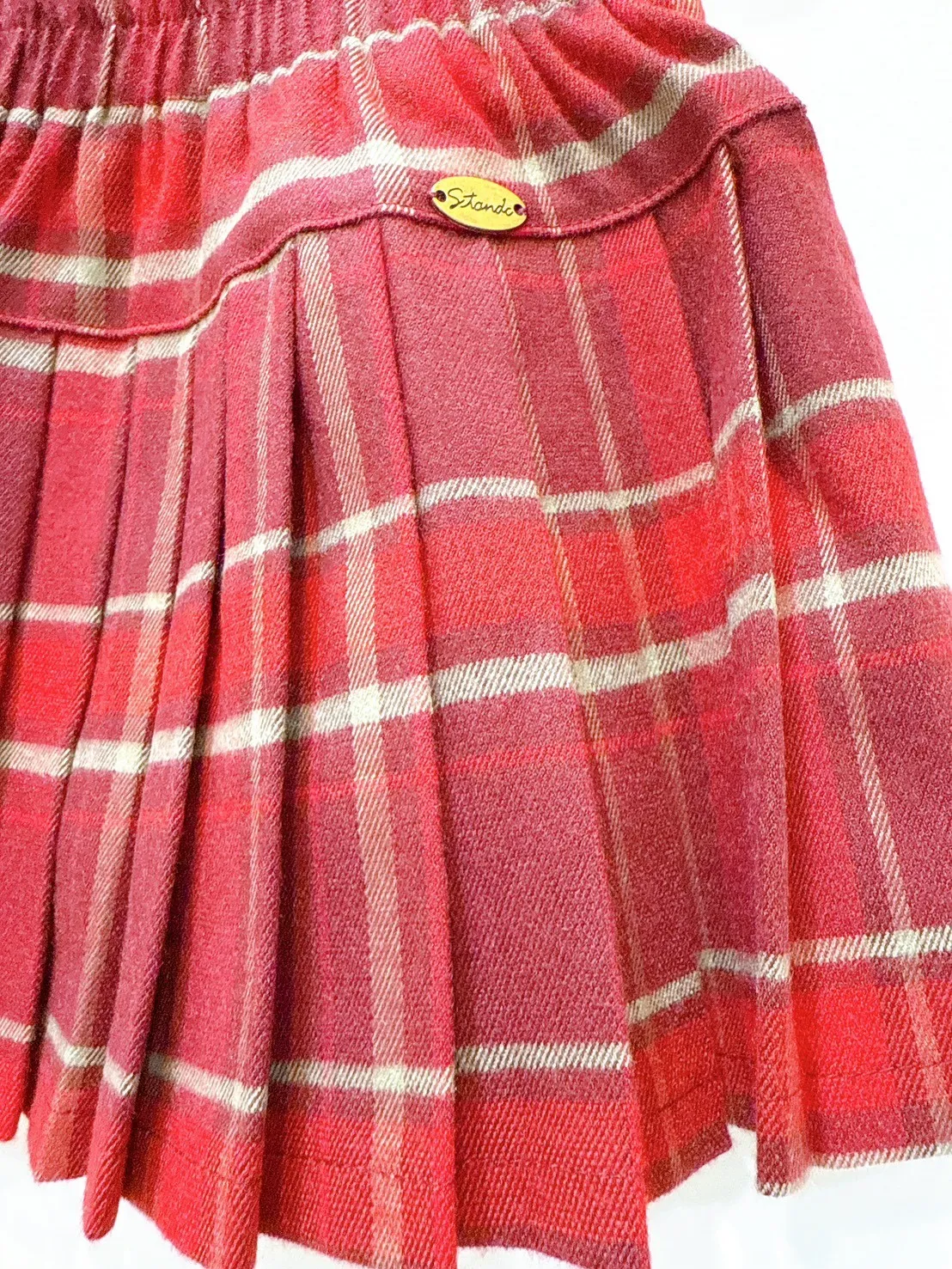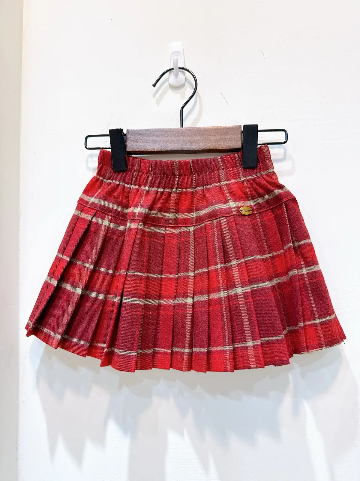 香水娜娜~⼩⾦屬牌格⼦百褶半裙(90-160cm現貨)