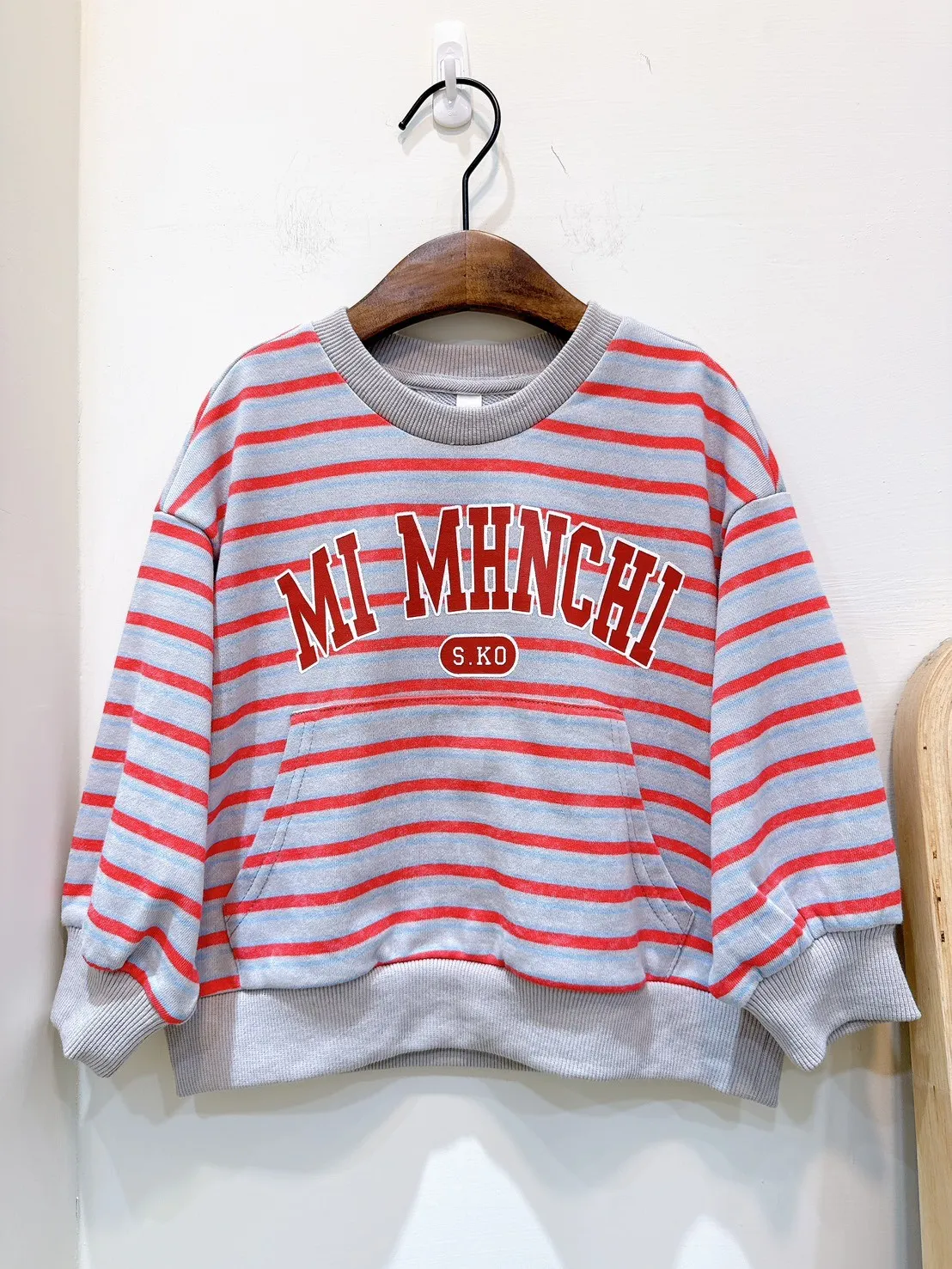 香水娜娜~條紋英⽂袋鼠袋衛衣(90-140cm現貨)
