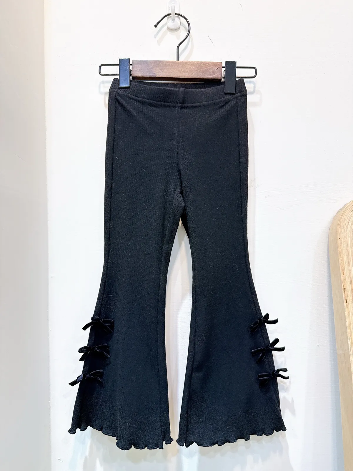 香水娜娜~蝴蝶結粗坑磨⽑絨喇叭褲(90-140cm現貨)