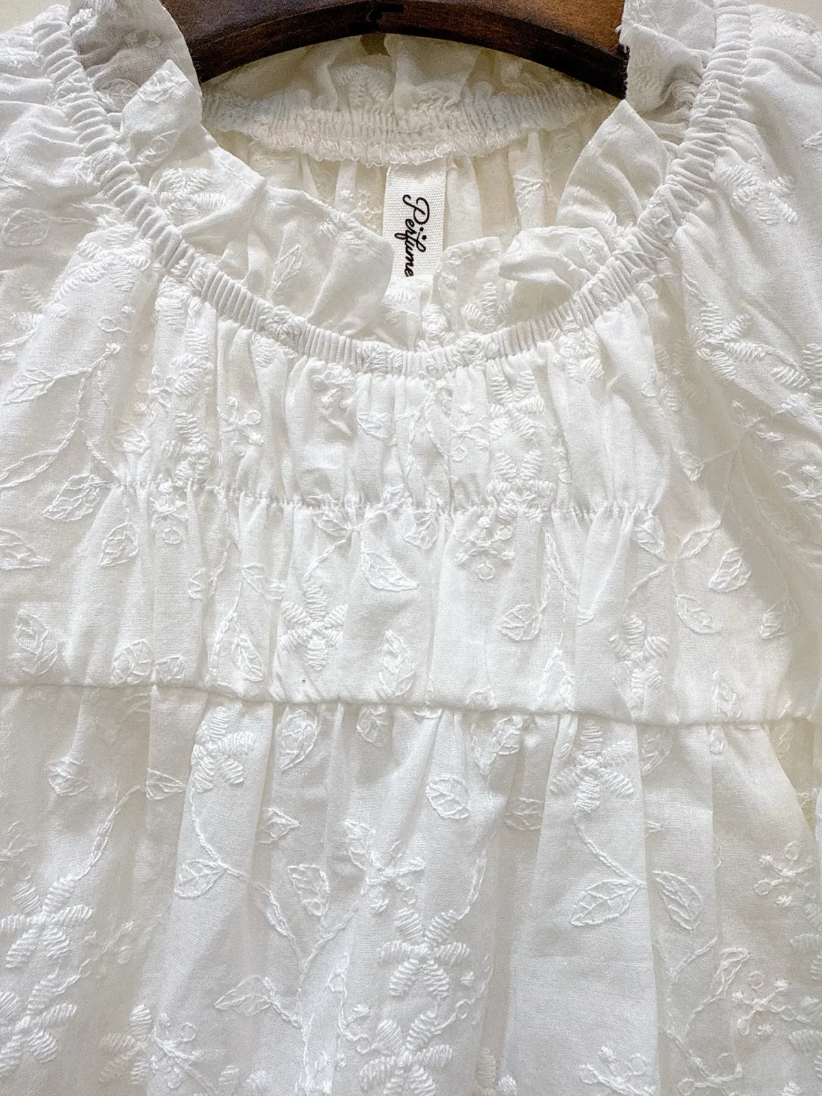 香水娜娜~繡花布波浪邊上衣(90-140cm現貨)
