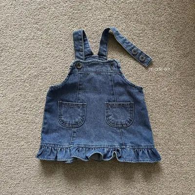 正韓木耳邊前兩口袋吊帶裙(80-125cm預購)