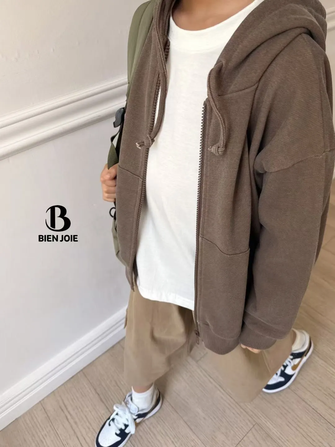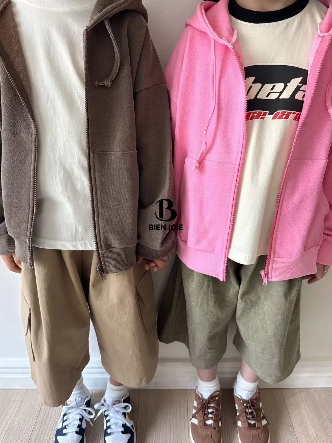 正韓毛圈休閒連帽外套(90-155cm粉色現貨)