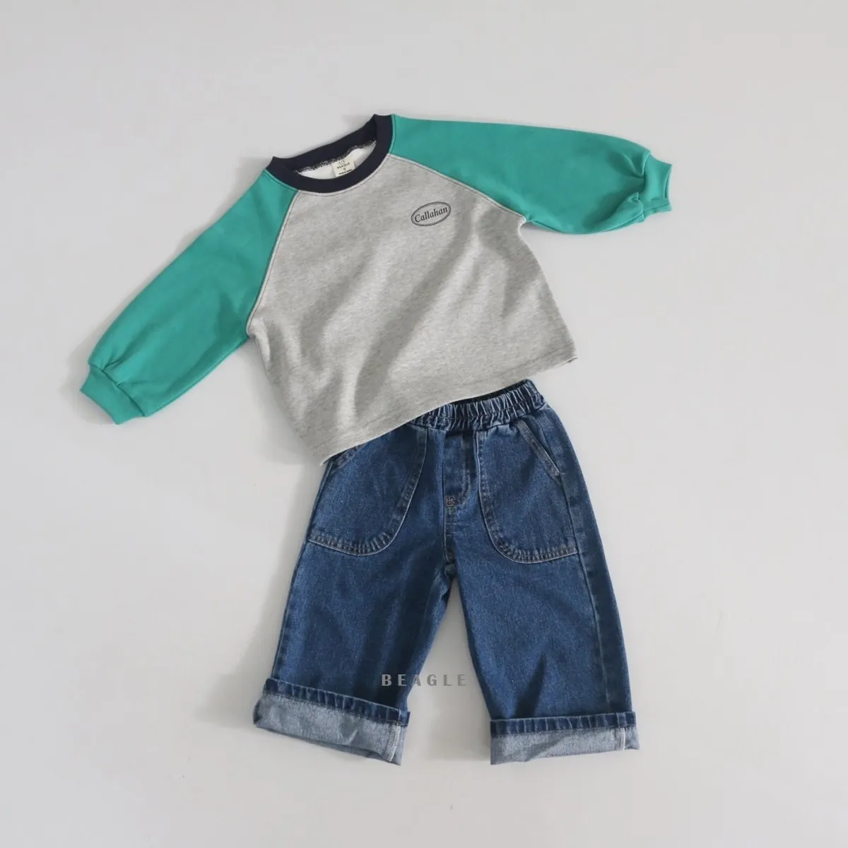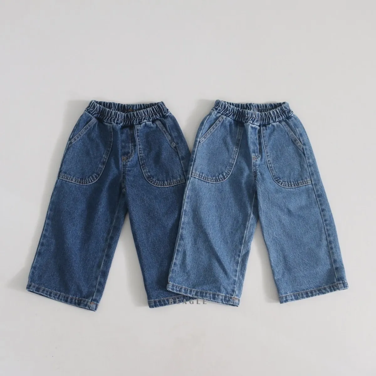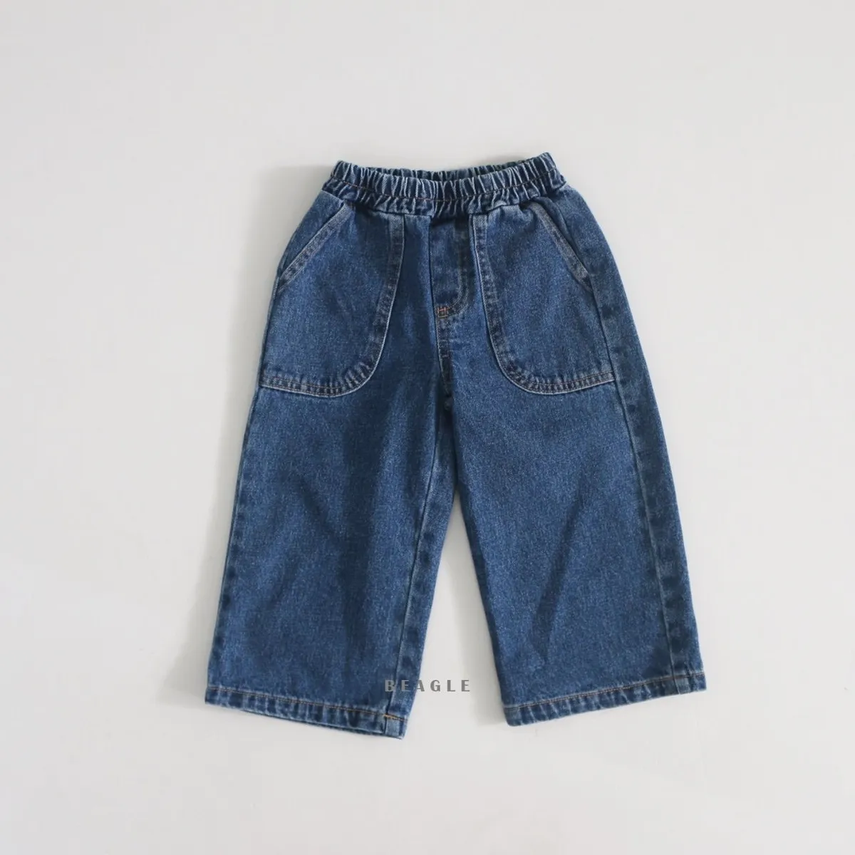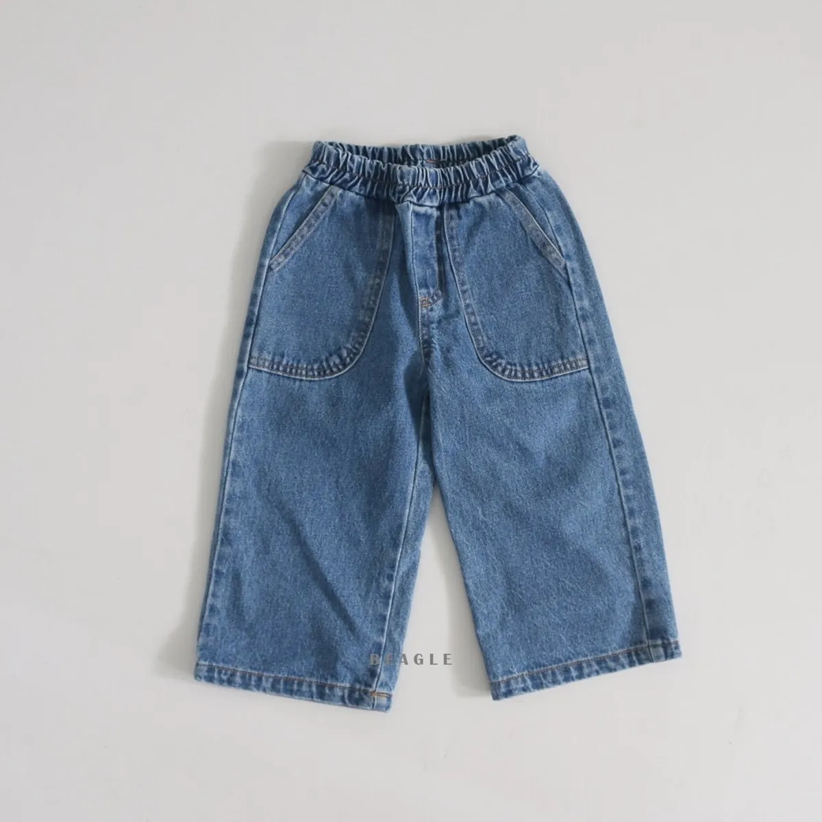 正韓前大口袋車線牛仔長褲(90-160cm現貨)