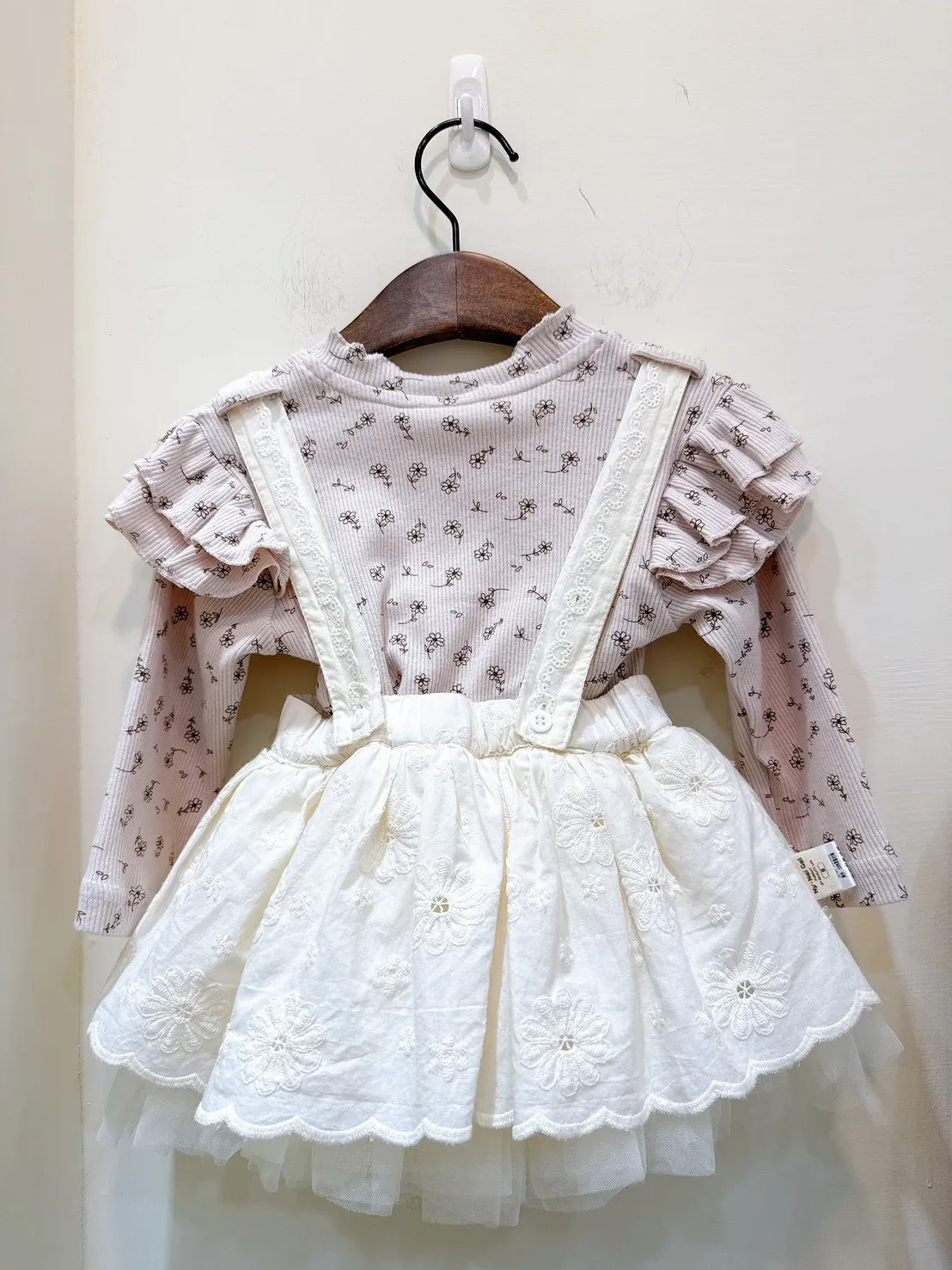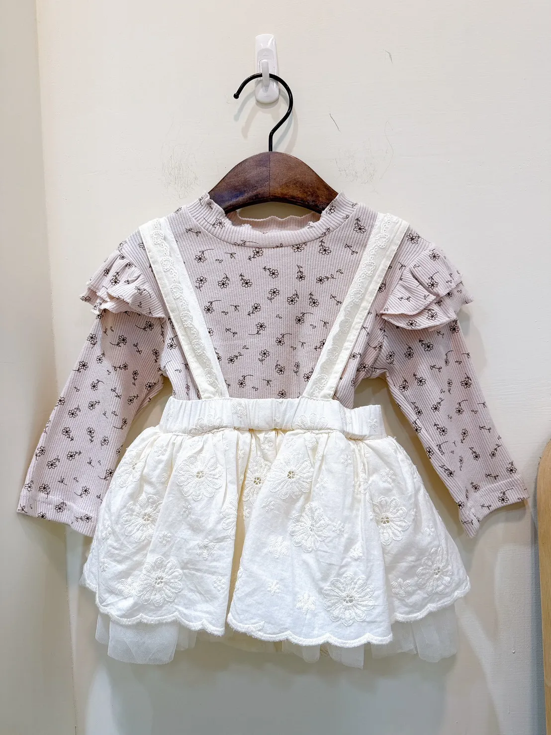 女寶碎花吊帶蕾絲包屁套裝(73-90cm現貨)