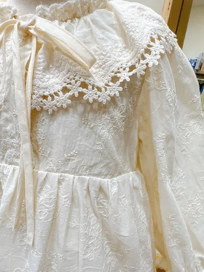 女大童蕾絲雕花大領洋裝(110-150cm現貨)