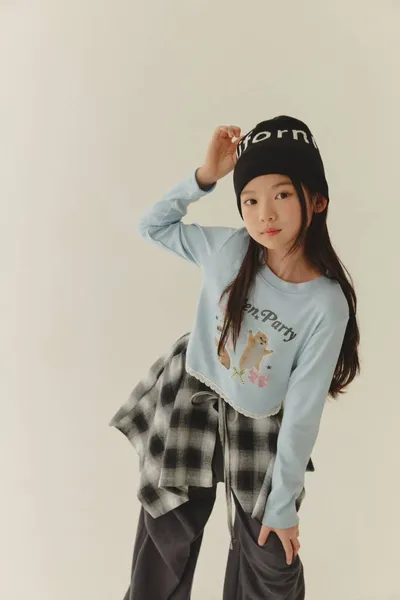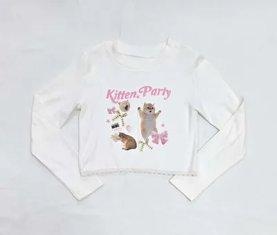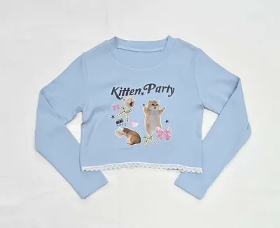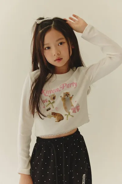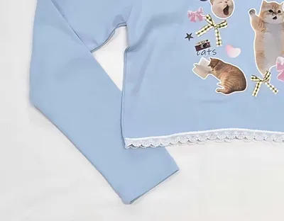 正韓女大童小貓派對短版薄長袖(90-160cm)預購