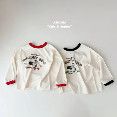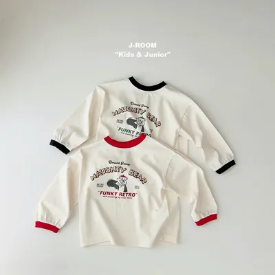 正韓可愛熊熊邊條薄長袖(90-150cm預購)
