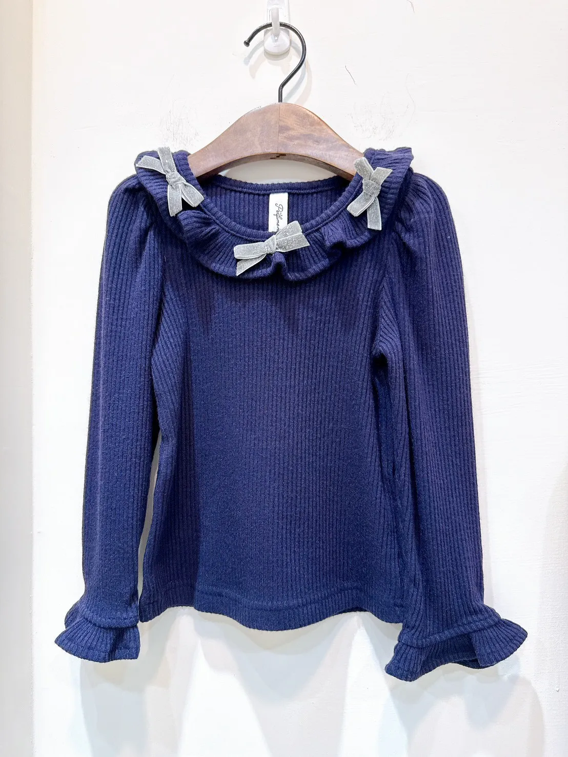 香水娜娜~蝴蝶結荷葉領上衣(90-140cm現貨)