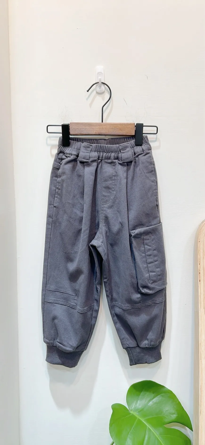 香水娜娜~立體袋螺紋腳⼝長褲(90-140cm現貨)
