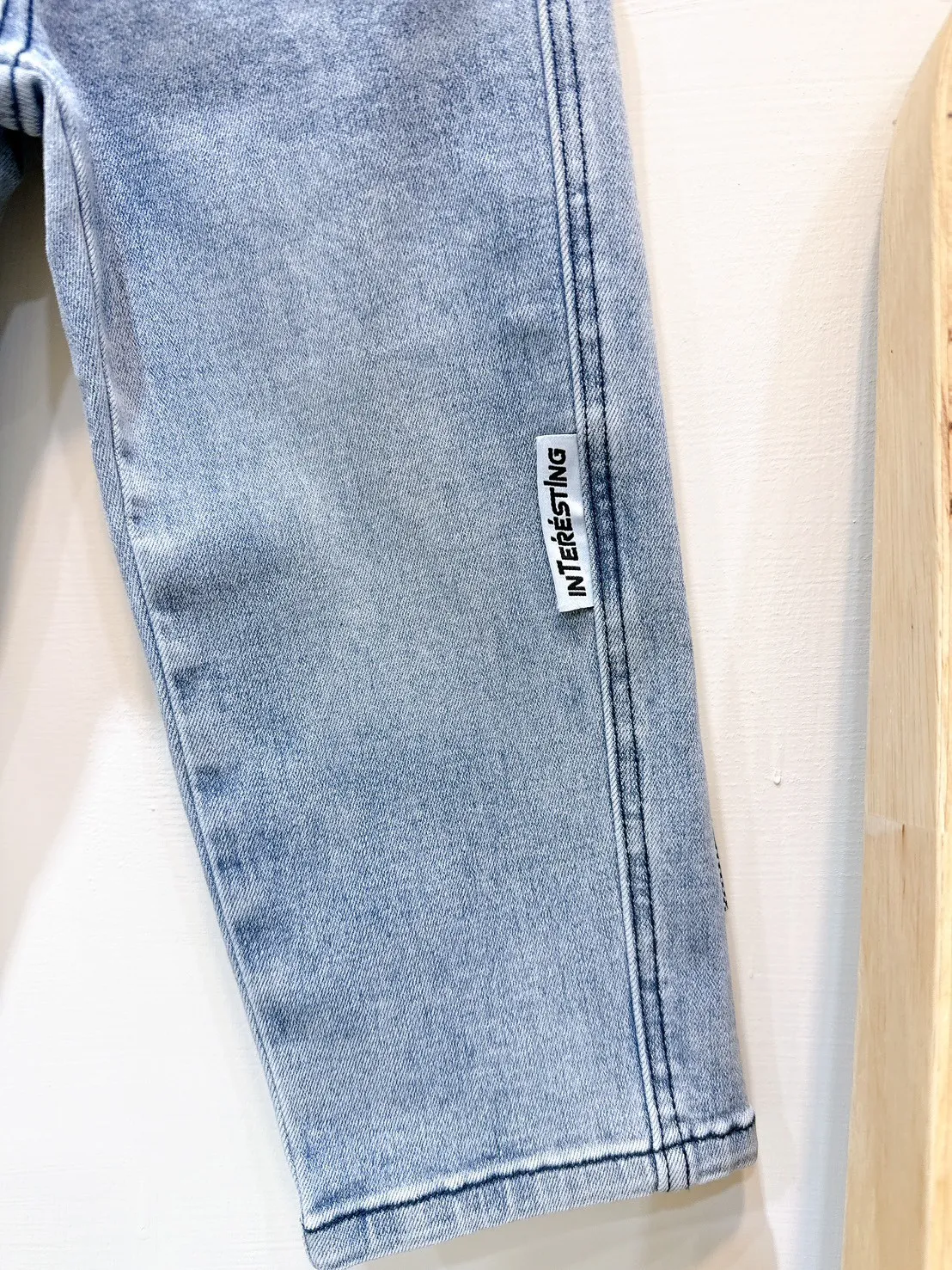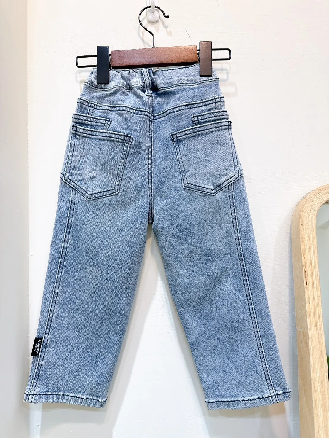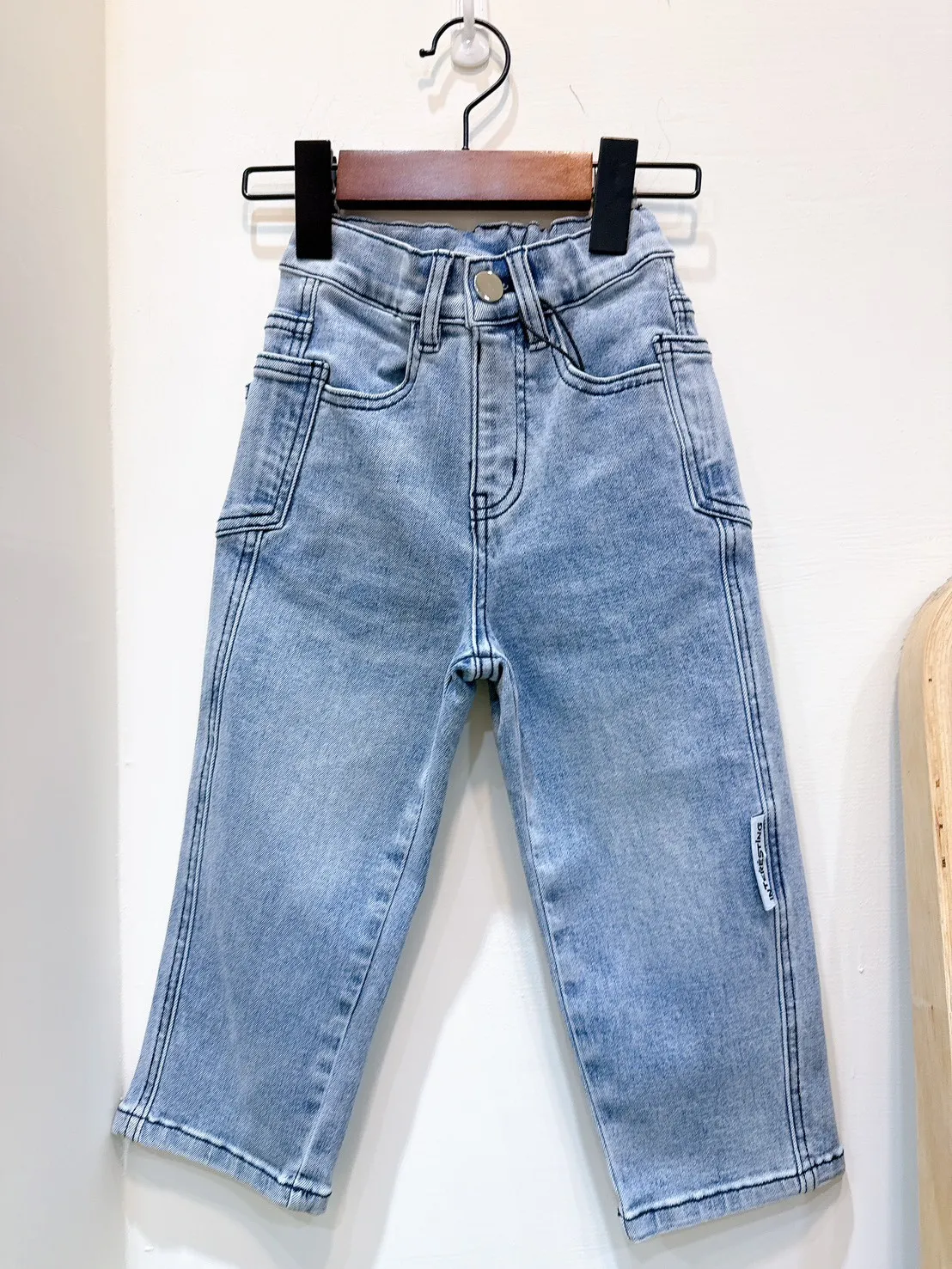 香水娜娜~側邊剪裁多貼袋⽜仔褲(90-140cm現貨)