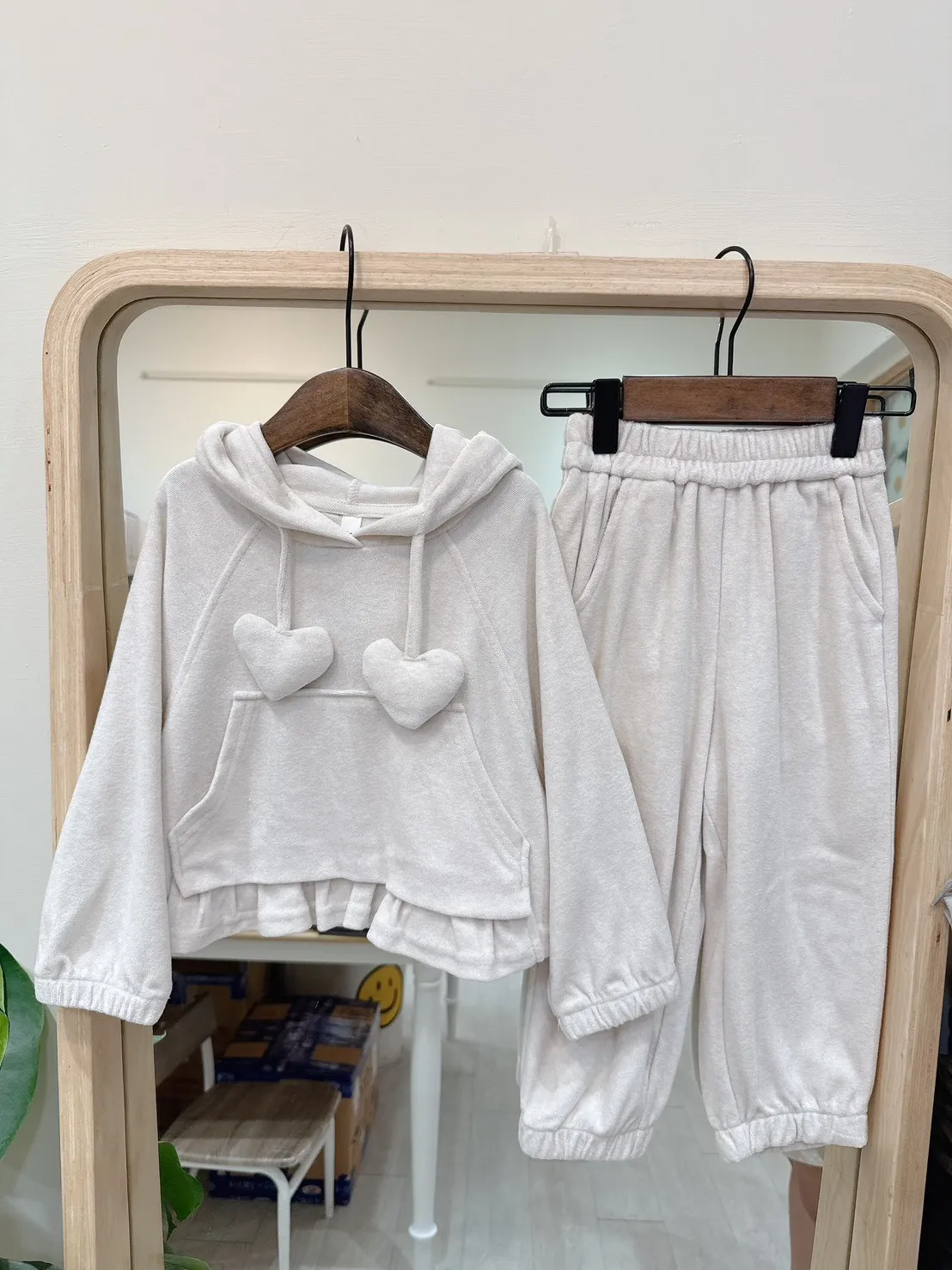香水娜娜~愛⼼帽繩衛衣套裝(90-140cm現貨)