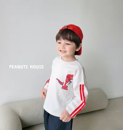 正韓邊條恐龍薄長袖(90-140cm現貨)
