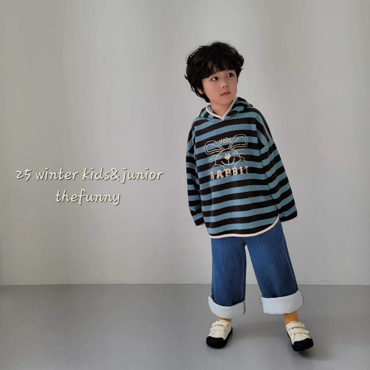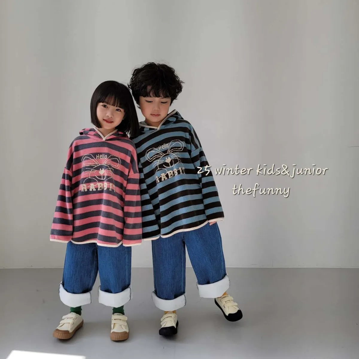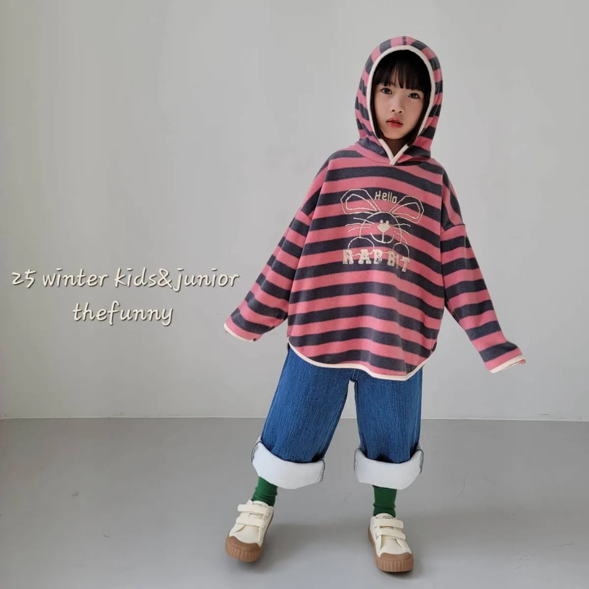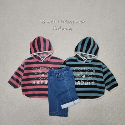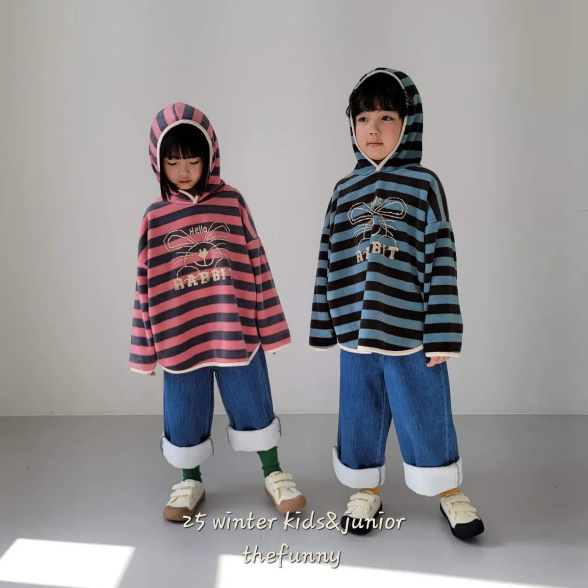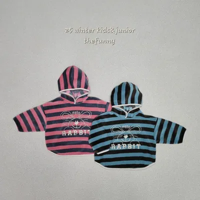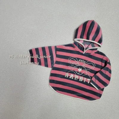 正韓橫條兔子刷毛帽T(85-140cm預購)
